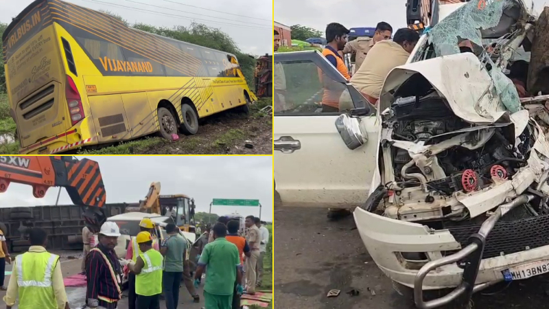 ಮಹೇಂದ್ರ TUV, ಲಾರಿ, VRL ಬಸ್ ಮಧ್ಯೆ ಸರಣಿ ಅಪಘಾತ; ಸ್ಥಳದಲ್ಲೇ ಪ್ರಾಣಬಿಟ್ಟ 6 ಮಂದಿ…!!!