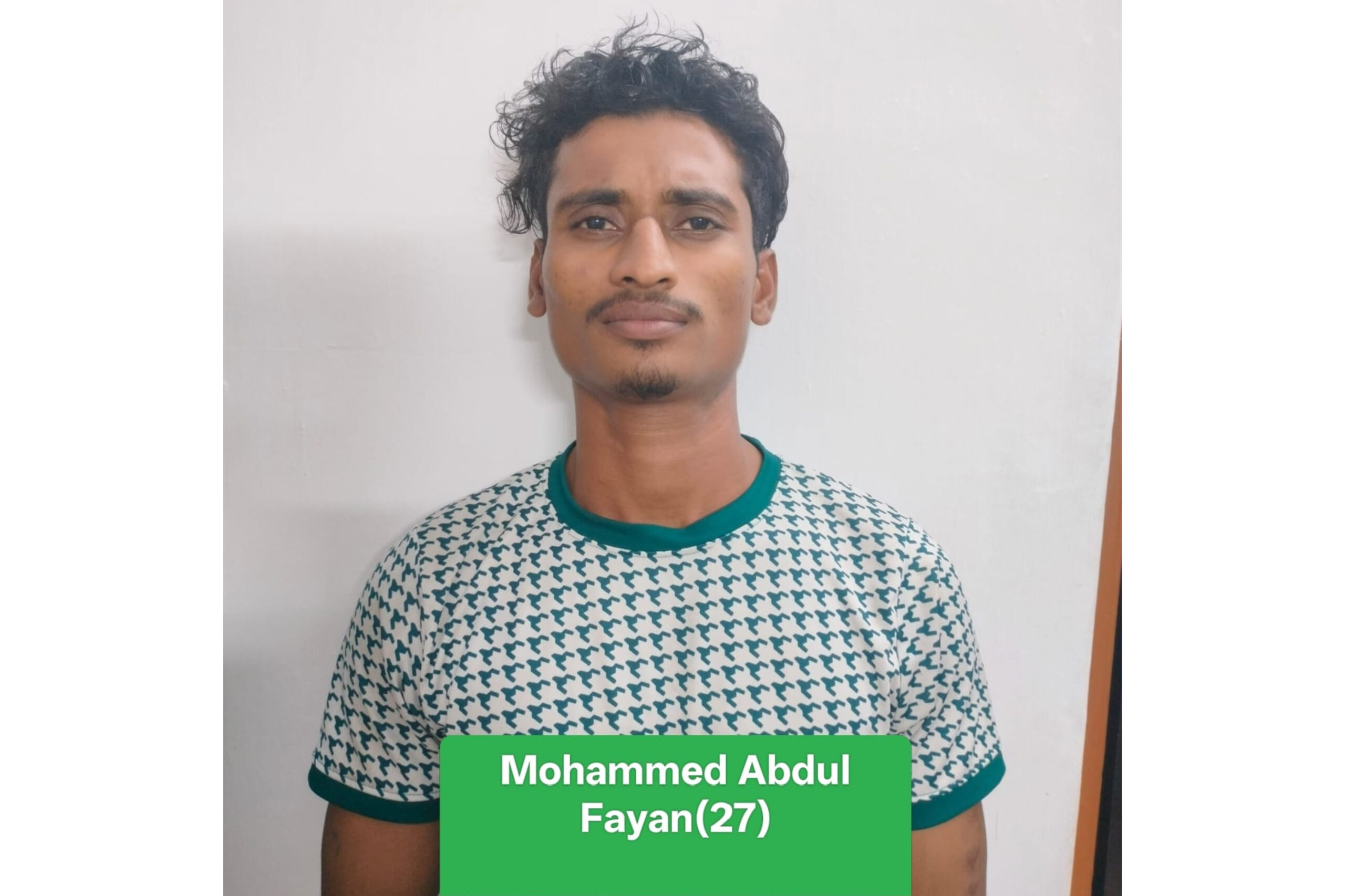 - ಮೊಹಮ್ಮದ್ ಅಬ್ದುಲ್ ಫಯಾನ್(27). ತಂದೆ: ಕೆ ಎಂ ಅಬ್ಬಾಸ್. ವಾಸ: ಬಟ್ಯಡ್ಕ ಮನೆ, ಬದ್ರಿಯ ನಗರ. ಕಲ್ಕಟ್ಟ, ಮಂಜನಾಡಿ, ಮಂಗಳೂರು