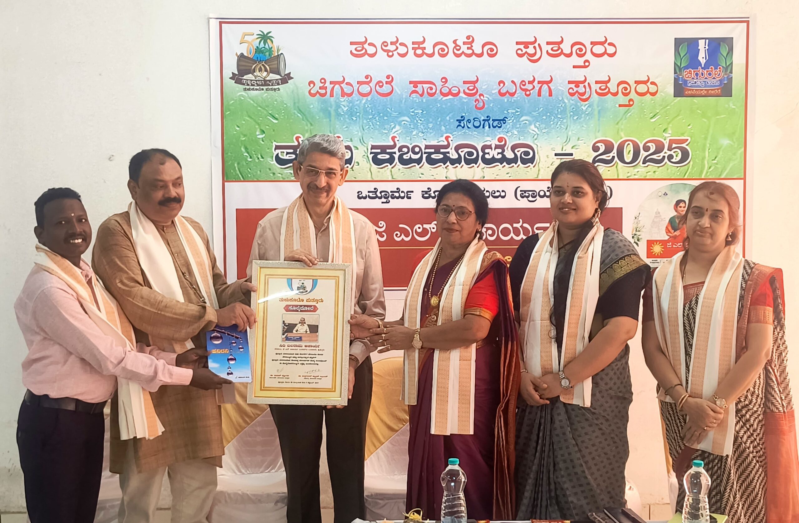 ಪುತ್ತೂರು: ಗತಕಾಲದ ತುಳು ಪರಂಪರೆಯನ್ನು ಇಂದಿನ ಜನಾಂಗಕ್ಕೆ ತಿಳಿಸುವ ಕಾರ್ಯಕ್ರಮಗಳನ್ನು ಪುತ್ತೂರು ತುಳುಕೂಟವು ಸತತವಾಗಿ ಹಮ್ಮಿಕೊಳ್ಳುತ್ತಿರುವುದು ಪ್ರಶಂಸನೀಯ ಎಂದು ಜಿ.ಎಲ್. ಸಮೂಹ ಸಂಸ್ಥೆಗಳ ಮುಖ್ಯಸ್ಥ ಬಲರಾಮ ಆಚಾರ್ಯ ಹೇಳಿದರು. ಪುತ್ತೂರು ತುಳುಕೂಟವು ಚಿಗುರೆಲೆ ಸಾಹಿತ್ಯ ಬಳಗದ ಜತೆಗೂಡಿ ನಡೆಸಿದ ತುಳು ಕಬಿಕೂಟ -2025 ಅನ್ನು ವಿದ್ವಾಂಸ ಡಾ. ಪಾಲ್ತಾಡಿ ರಾಮಕೃಷ್ಣ ಆಚಾರ್ ರಚನೆಯ ತುಳುಗೀತೆಯನ್ನು ಓದುವ ಮೂಲಕ ಬಲರಾಮ ಆಚಾರ್ಯ ಅವರು ಕವಿಗೋಷ್ಠಿಯನ್ನು ಉದ್ಘಾಟಿಸಿದರು.