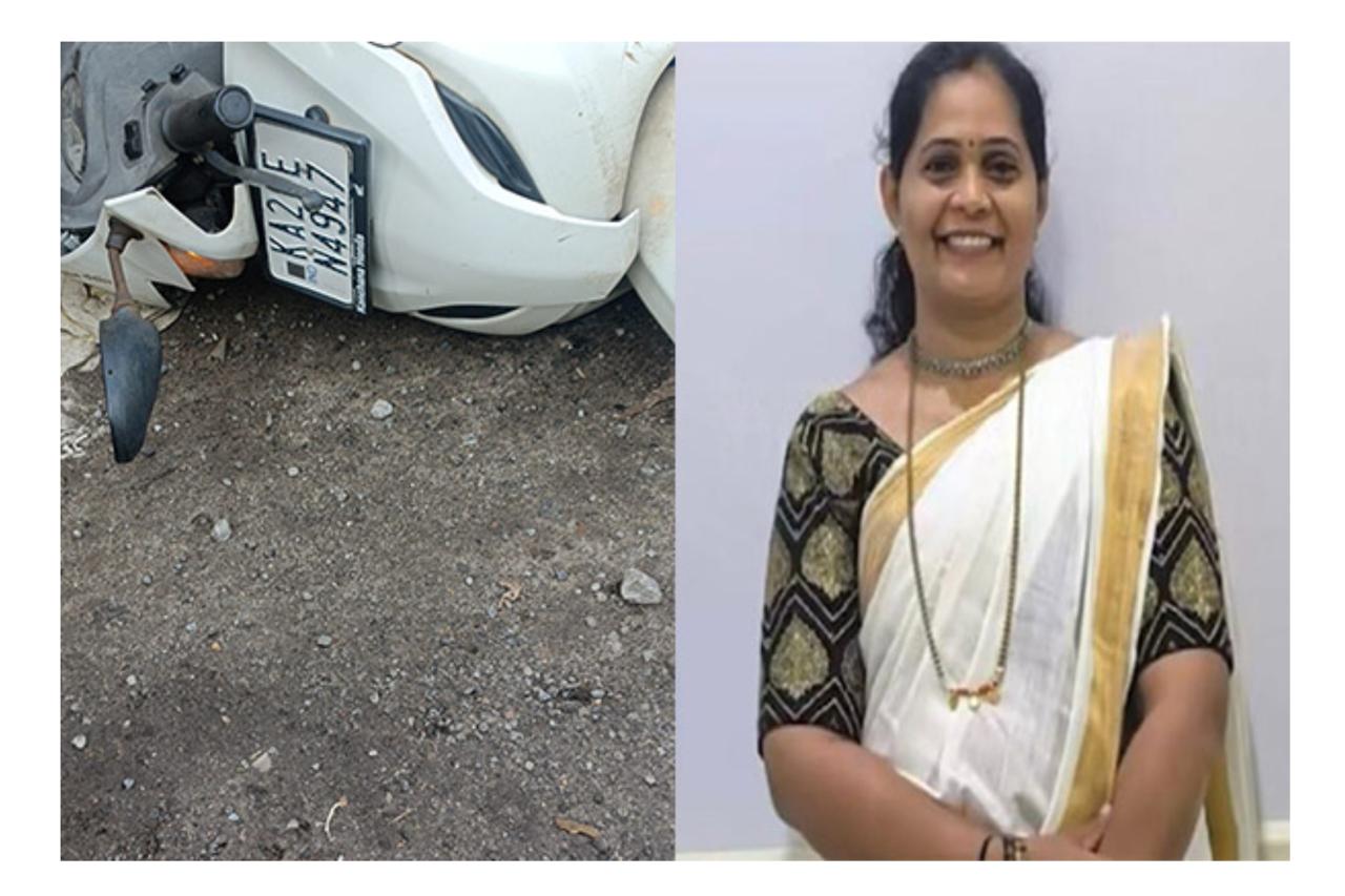ಅವರು ಚಲಾಯಿಸುತ್ತಿದ್ದ ಸ್ಕೂಟರ್ ನಿಯಂತ್ರಣ ತಪ್ಪಿ ರಸ್ತೆಯ ಗುಂಡಿಗೆ ಬಿದ್ದಿದ್ದರು.