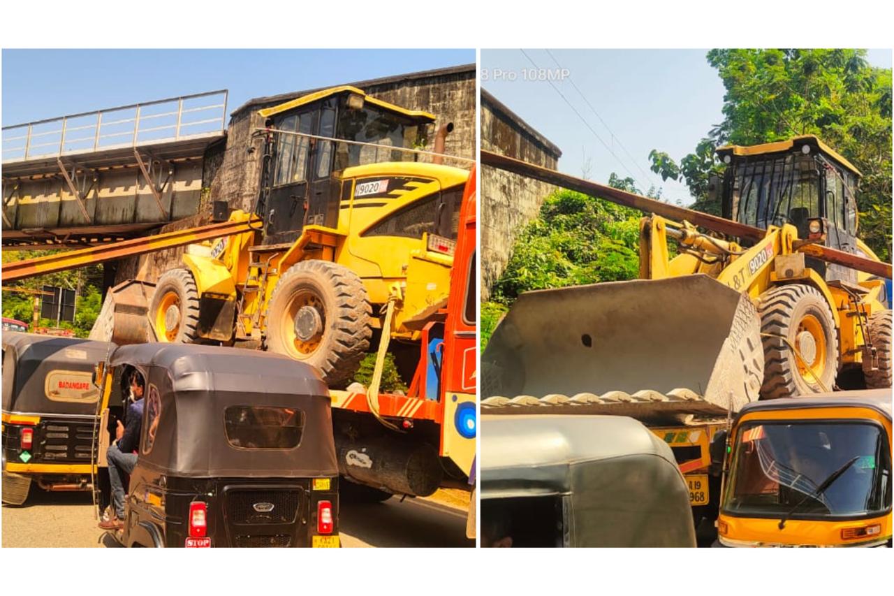 ಪುತ್ತೂರು: ಮಿತ್ತೂರು ರೈಲ್ವೆ ಮೇಲ್ಸೇತುವೆಯ ಸೇಫ್ ಗಾರ್ಡ್ ಗೆ ಜೆಸಿಬಿ ಕೊಂಡೊಯ್ಯುತ್ತಿದ್ದ ಲಾರಿ ಯೊಂದು ಡಿಕ್ಕಿ ಹೊಡೆದ ಪರಿಣಾಮ ಗಾರ್ಡ್ ಜೆಸಿಬಿ ಮೇಲೆ ಬಿದ್ದಿದ್ದು ಸಂಚಾರ ಅಸ್ತವ್ಯಸ್ತವಾಗಿದೆ.