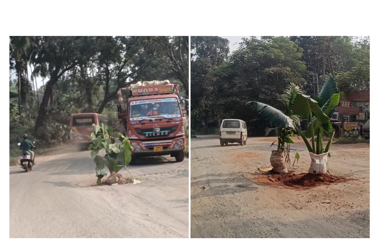 ಹೊಂಡ ಗುಂಡಿಗೆ ಅಲ್ಲಲ್ಲಿ ಗಿಡನೆಡುವ ಮೂಲಕ ಸಾರ್ವಜನಿಕರು ಆಕ್ರೋಶ ವ್ಯಕ್ತಪಡಿಸುತ್ತಿದ್ದಾರೆ. ನಿನ್ನೆ ಎರಡಿದ್ದ ಗಿಡ ಇಂದು ಆರಕ್ಕೂ ಹೆಚ್ಚಾಗಿದೆ. ಈ ಮೂಲಕ ರಸ್ತೆ ಮಿಶ್ರಬೆಳೆಯ ತೋಟವಾಗಿ ಮಾರ್ಪಾಡಾಗಿದ್ದು ತೆಂಗು,ಬಾಳೆ,ಅಡಿಕೆ, ಸುವರ್ಣಗೆಡ್ಡೆ, ಕೆಸು, ಪಪ್ಪಾಯ ಹೀಗೆ ವಿವಿಧ ತಳಿಯ ಗಿಡ ನೆಟ್ಟಿದ್ದಾರೆ‌‌.