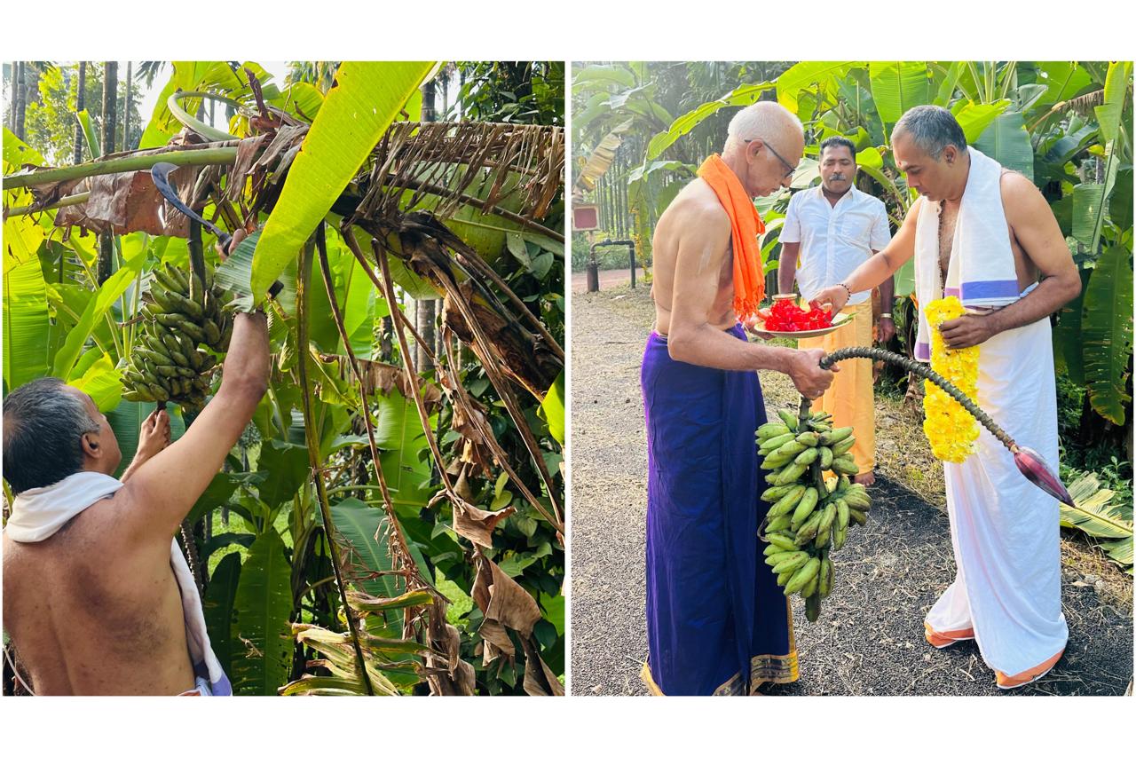 ದೇವಸ್ಥಾನದಲ್ಲಿ ಪೂಜೆ ಪ್ರಾರ್ಥನೆ ನೆರವೇರಿಸಿದ ಬಳಿಕ ಕ್ಷೇತ್ರದ ಅಧ್ಯಕ್ಷರಾದ ಗಂಗಾಧರ್ ಅಮೀನ್ ಇವರ ತೋಟದಿಂದ ಕ್ಷೇತ್ರದ ತಂತ್ರಿಗಳಾದ ಪ್ರೀತಮ್ ಪುತ್ತೂರಾಯ ಇವರ ನೇತೃತ್ವದಲ್ಲಿ ಅರ್ಚಕರಾದ ಮೋಹನ್ ಭಟ್ ರವರು ಪೂಜಾ ವಿಧಿ ವಿಧಾನಗಳನ್ನು ನೆರವೇರಿಸಿ ಗೊನೆ ಕಡಿಯಲಾಯಿತು.
