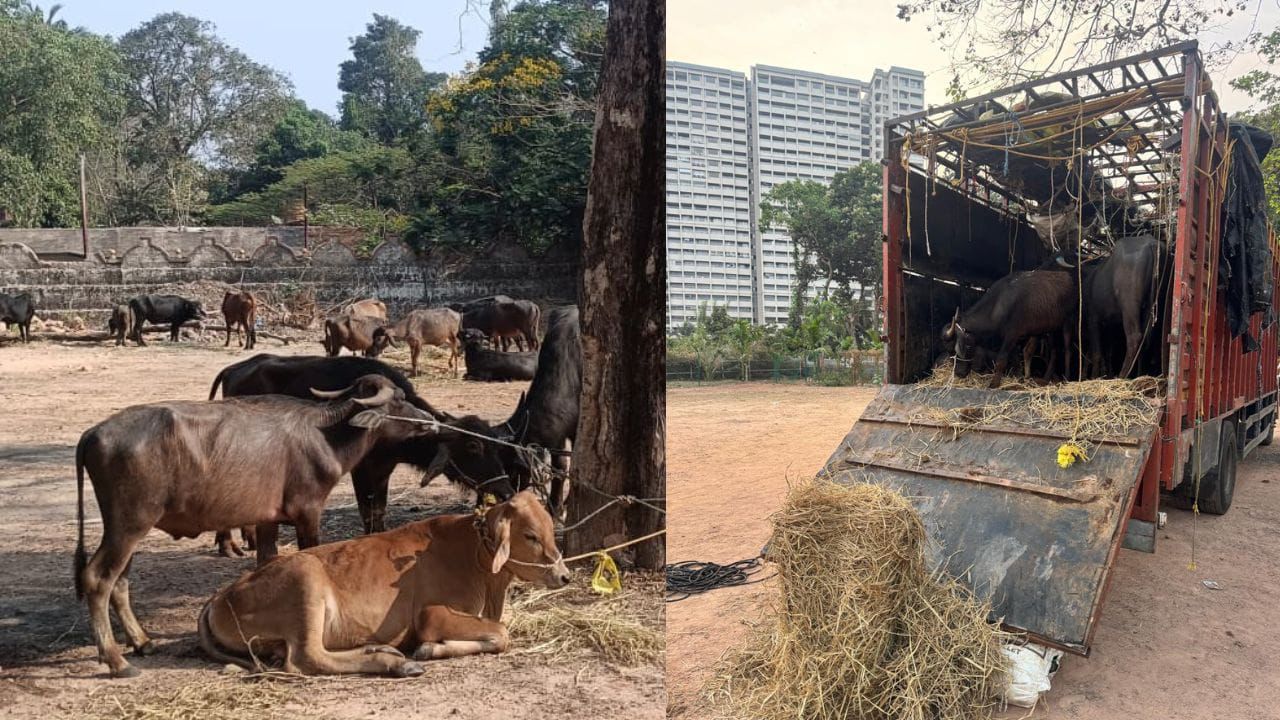 ಮಂಗಳೂರು : ಅಕ್ರಮವಾಗಿ ಸಾಗಾಟ ಮಾಡುತ್ತಿದ್ದ 34 ಜಾನುವಾರುಗಳನ್ನು ಮಂಗಳೂರಿನ ಕದ್ರಿ ಠಾಣೆ ಪೊಲೀಸರು ರಕ್ಷಣೆ ಮಾಡಿದ್ದಾರೆ. ಜಾನುವಾರು ಸಾಗಾಟ ಬಗ್ಗೆ ಖಚಿತ ಮಾಹಿತಿ ಮೇರೆಗೆ ರಾಷ್ಟ್ರೀಯ ಹೆದ್ದಾರಿ 66ರಲ್ಲಿ ಕಾರ್ಯಾಚರಣೆ ನಡೆಸಿರುವ ಖಾಕಿ ತಂಡ ಜಾಲವನ್ನು ಭೇದಿಸಿದೆ. ಜಾನುವಾರುಗಳ ಕಾಲುಗಳನ್ನು ಹಗ್ಗದಿಂದ ಕಟ್ಟಿ ಹಿಂಸಾತ್ಮಕ ರೀತಿಯಲ್ಲಿ ಸಾಗಾಟ ಮಾಡುತ್ತಿರುವುದು ಈ ವೇಳೆ ಕಂಡುಬಂದಿದ್ದು, ಕೇರಳದ ಕಸಾಯಿಖಾನೆಗೆ ಇವುಗಳನ್ನು ಸಾಗಿಸಲಾಗುತ್ತಿತ್ತು. ಪ್ರಕರಣ ಸಂಬಂಧ ದಸ್ತಗೀರ್ ಸಾಬ್, ಖತಿಪ್ ಪಾಷಾ ಮತ್ತು ಅಯೂಬ್ ಖಾನ್ ಎಂಬವರನ್ನು ಬಂಧಿಸಲಾಗಿದೆ. ಕದ್ರಿ ಪೊಲೀಸ್ ಠಾಣೆಯಲ್ಲಿ ಈ ಬಗ್ಗೆ ಪ್ರಕರಣ ದಾಖಲಾಗಿದೆ.