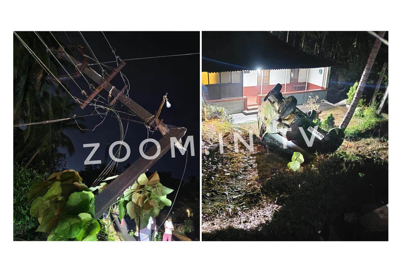 ವಿಟ್ಲ: ವಿದ್ಯುತ್ ಕಂಬಕ್ಕೆ ಡಿಕ್ಕಿ ಹೊಡೆದು ಕಾರು ಪಲ್ಟಿ..!!