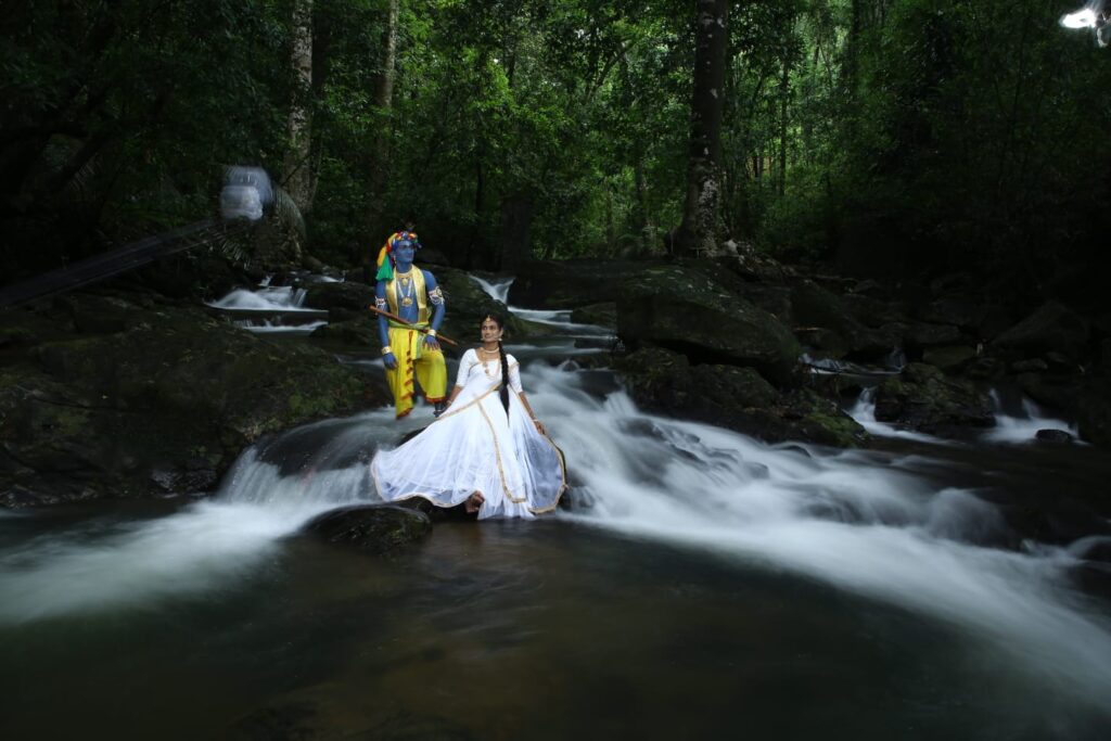 ಬಂಗಾಡಿಯ ಜಲಪಾತವೊಂದರ ಬಳಿ ನೀರೂ ನಾಚುವಂತೆ ಫೋಟೋಗಳನ್ನು ಕ್ಲಿಕ್ಕಿಸಲಾಗಿದೆ. ಬೆಳ್ತಂಗಡಿಯ ಪ್ರತಿಭಾನ್ವಿತ ಛಾಯಾಗ್ರಾಹಕ ಸುಗುಣೇಂದ್ರ ಅವರ ‘ಸುಗ್ಗು ಫೋಟೋಗ್ರಫಿ’ ಕೈಚಳಕದಲ್ಲಿ, ಕಲಾವಿದ ಶರೂನ್ ನಾಯರ್ ಹಾಗೂ ದೀಕ್ಷಿತ್ ಸಹಕಾರದೊಂದಿಗೆ ಮೂಡಿಬಂದಿದೆ ಈ ರಾಧಾಕೃಷ್ಣ ರೂಪಗಳು.