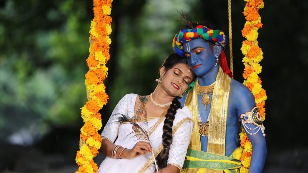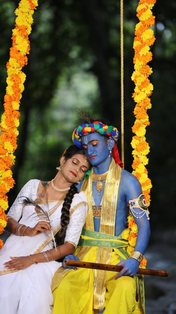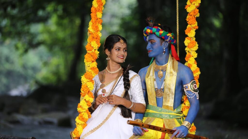 ರಾಧಾಕೃಷ್ಣರ ರೂಪ ಎಲ್ಲರ ಕಣ್ಣ ಮುಂದೆ ಇವತ್ತಿಗೂ ಹಾದುಹೋಗುತ್ತದೆ. ವೈವಿಧ್ಯಮಯ ರೂಪದಲ್ಲಿ ರಾಧಾಕೃಷ್ಣರ ರೂಪ ವಿಭಿನ್ನವಾಗಿರುತ್ತದೆ. ಅಂತೆಯೇ ಇಲ್ಲಿ ಸಹೋದರ ಸಹೋದರಿಯೇ ರಾಧಾಕೃಷ್ಣರಾಗಿದ್ದಾರೆ. ರಾಧಾಕೃಷ್ಣರ ಈ ವಿಭಿನ್ನ ಗೆಟಪ್ ಎಲ್ಲರನ್ನೂ ಕಣ್ಮನಸೆಳೆಯುವಂತಿದೆ.