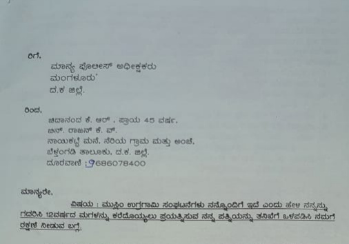 ಬೆಳ್ತಂಗಡಿ: ಪತ್ನಿಗೆ ಉಗ್ರ ಸಂಘಟನೆಯೊಂದಿಗೆ ನಂಟು ಇದೇ ಎನ್ನುವ ಆರೋಪ:; ಎಸ್.ಪಿ ಗೆ ದೂರು ನೀಡಿದ ಪತಿ