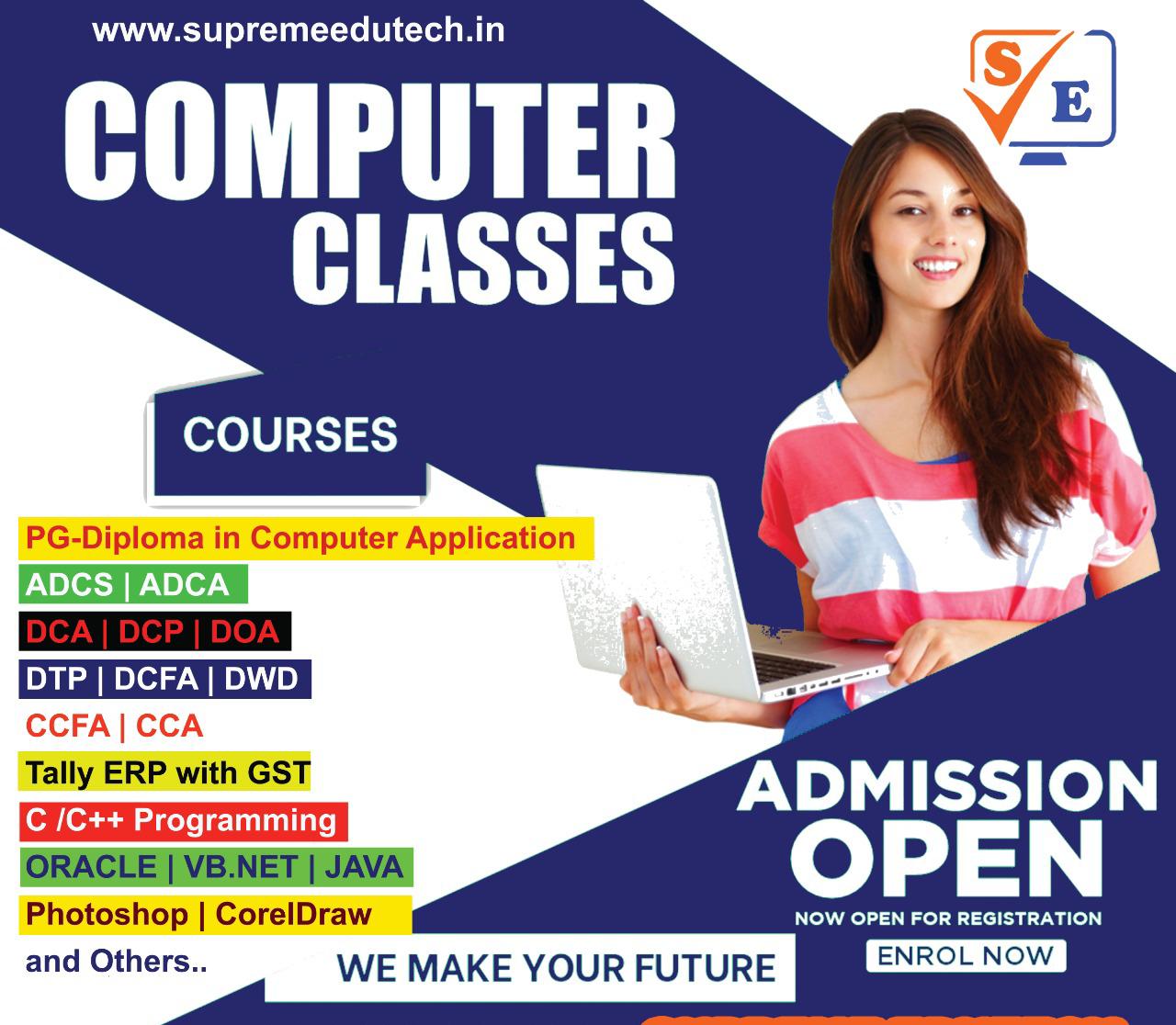 ಪುತ್ತೂರು ನಗರ ಪೊಲೀಸ್ ಠಾಣೆಯ ಮಂಭಾಗದಲ್ಲಿರುವ ಶ್ರೀ ಶಾರದಾ ಕೃಪಾ ಬಿಲ್ಡಿಂಗ್ ನಲ್ಲಿರುವ ‘Supreme Edutech’ Computer training Institute ನಲ್ಲಿ ಕಂಪ್ಯೂಟರ್ ತರಗತಿಗೆ ದಾಖಲಾಗಲು ದಾಖಲಾತಿ ಪ್ರಕ್ರಿಯೆ ಆರಂಭಗೊಂಡಿದೆ.