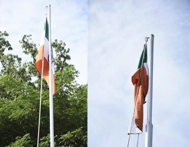 ಸಿಬ್ಬಂದಿಗಳ ಎಡವಟ್ಟಿನಿಂದ ರಾಷ್ಟ್ರಧ್ವಜವೂ ತಲೆಕೆಳಗಾಗಿ ಹಾರಿದ್ದು, ತಕ್ಷಣ ಅಧಿಕಾರಿಗಳು ಗಮನಿಸಿ ರಾಷ್ಟ್ರ ಧ್ವಜವನ್ನು ಸರಿಪಡಿಸಿದರು.