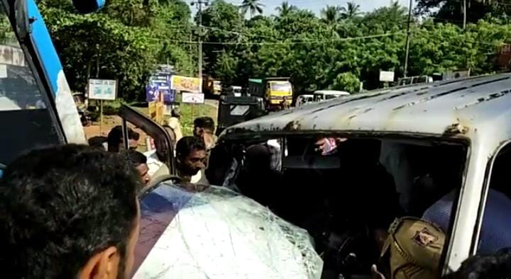 ಖಾಸಗಿ ಬಸ್ಗೆ ಡಿಕ್ಕಿ ಹೊಡೆದ ಪರಿಣಾಮ ಬೆಂಗಾವಲು ವಾಹನ ಮುಂಭಾಗ ನಜ್ಜುಗುಜ್ಜಾಗಿದ್ದು ಅದರ ಚಾಲಕ ಗಾಯಗೊಂಡಿದ್ದಾರೆ ಎಂದು ತಿಳಿದು ಬಂದಿದೆ.