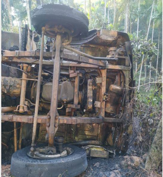 ಅಷ್ಟೊತ್ತಿಗಾಗಲೇ ಲಾರಿ ಸಂಪೂರ್ಣ ಬೆಂಕಿಯ ಕೆನ್ನಾಲಗೆ ತುತ್ತಾಗಿ ಅವಶೇಷಗಳು ಮಾತ್ರ ಉಳಿದುಕೊಂಡಿದೆ.