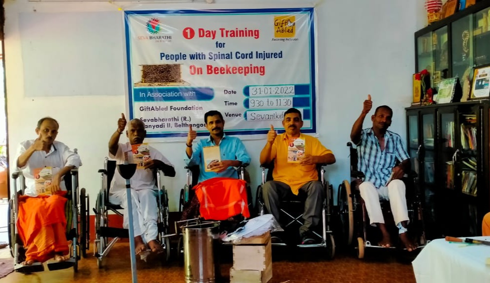 ಬೆಳ್ತಂಗಡಿ: ಸೇವಾಭಾರತಿ ಕನ್ಯಾಡಿ ಇದರ ಆಶ್ರಯದಲ್ಲಿ , ಗಿಫ್ಟ್ ಎಬಲ್ಡ್ ಫೌಂಡೇಶನ್ ಬೆಂಗಳೂರು ಇವರ ಸಹಯೋಗದೊಂದಿಗೆ ಜ.31 ರಂದು ಸೇವಾ ಭಾರತಿ ಪ್ರಧಾನ ಕಚೇರಿಯಾದ ಸೇವಾನಿಕೇತನದಲ್ಲಿ ಸೇವಾಧಾಮದ ಮೂಲಕ ಗುರುತಿಸಲ್ಪಟ್ಟ ಬೆನ್ನು ಮೂಳೆ ಮುರಿತಕ್ಕೊಳಗಾದ ವಿಶೇಷ ಚೇತನರು ಹಾಗೂ ಪೋಷಕರಿಗೆ ಉಚಿತ ಜೇನು ಕೃಷಿ ಕಾರ್ಯಗಾರ ನಡೆಯಿತು.