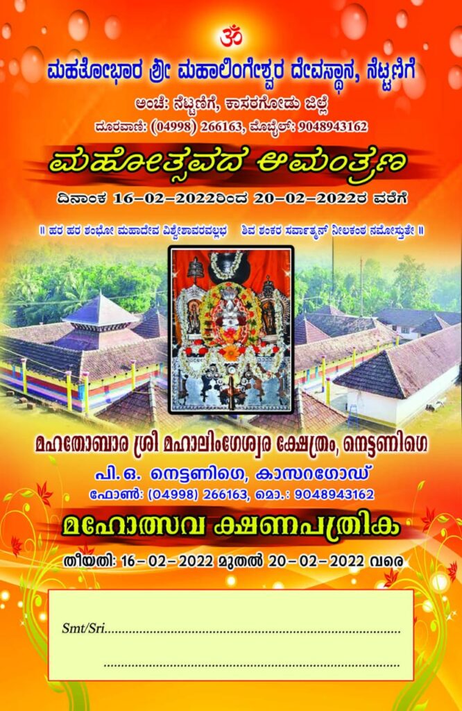 ಕಾಸರಗೋಡು: ನೆಟ್ಟಣಿಗೆ ಮಹತೋಭಾರ ಶ್ರೀ ಮಹಾಲಿಂಗೇಶ್ವರ ದೇವಸ್ಥಾನದಲ್ಲಿ ವಾರ್ಷಿಕ ಮಹೋತ್ಸವ ಫೆ.16 ರಂದು ಧ್ವಜಾರೋಹಣವಾಗಿ 5 ದಿವಸಗಳ ಉತ್ಸವ ನಡೆಯಲಿದ್ದು, ಈ ಹಿನ್ನೆಲೆ ಫೆ.10 ರಂದು ಗೊನೆ ಮುಹೂರ್ತ ಕಾರ್ಯಕ್ರಮವು ನಡೆಯಿತು.