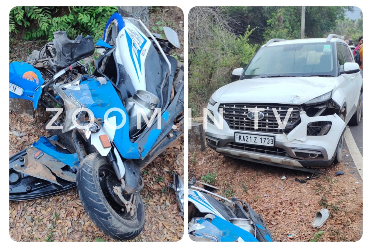 ಪುತ್ತೂರು: ಕಾರು ಮತ್ತು ಆಕ್ಟಿವಾ ನಡುವೆ ಡಿಕ್ಕಿ ಸಂಭವಿಸಿದ ಘಟನೆ ಅಮ್ಚಿನಡ್ಕ ಎಂಬಲ್ಲಿ ನಡೆದಿದೆ.