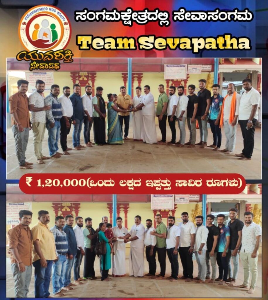 ಬಂಟ್ವಾಳ: ಯುವಶಕ್ತಿ ಸೇವಾಪಥದ ವತಿಯಿಂದ ಶಿವಸನ್ನಿಧಿಗಳಲ್ಲಿ ಸೇವಾಸಂಗಮ ಹಲವು ಸಂಘಟನೆಗಳ ಆಶ್ರಯದಲ್ಲಿ ನೆರವೇರಿದ್ದು, ಉಪ್ಪಿನಂಗಡಿ ಕಡೆ ಮಖೆಯಲ್ಲಿ ವಿಶೇಷ ವೇಷ ಧರಿಸಿ ಸಂಗಮ ಕ್ಷೇತ್ರದಲ್ಲಿ ಸೇವಾಸಂಗಮ ಎಂಬ ಯೋಜನೆಯಡಿ ವಿಶೇಷ ಬೃಹತ್ ವೇಷ ಧರಿಸಿ ದಾನಿಗಳಿಂದ 1,20,000(ಒಂದು ಲಕ್ಷದ ಇಪ್ಪತ್ತು ಸಾವಿರ) ಮೊತ್ತ ಸಂಗ್ರಹಿಸಿ ಹೃದಯ ಸಂಬಂಧಿತ ಕಾಯಿಲೆಯಿಂದ ಬಳಲುತ್ತಿರುವ ಧರ್ಮಸ್ಥಳದ ಬೇಬಿ, ದೀಪಾ ಹಾಗೂ ಕಿಡ್ನಿ ವೈಫಲ್ಯದಿಂದ ಬಳಲುತ್ತಿರುವ ಹೆಚ್ವಿನ ಚಿಕಿತ್ಸೆಗಾಗಿ ಉಪ್ಪಿನಂಗಡಿಯ ಯಕ್ಷ ಎಂಬ ಮಕ್ಕಳಿಗೆ ಸಹಸ್ರಲಿಂಗೇಶ್ವರ ಕ್ಷೇತ್ರದಲ್ಲಿ ವ್ಯವಸ್ಥಾಪನಾ ಸಮಿತಿಯ ಪ್ರಮುಖರ ಸಮಕ್ಷಮದಲ್ಲಿ ತಲಾ 60000 ಮೊತ್ತ ಹಸ್ತಾಂತರಿಸಲಾಯಿತು.