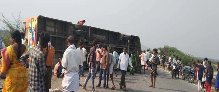 ಬಸ್ನಲ್ಲಿದ್ದ 25ಕ್ಕೂ ಹೆಚ್ಚು ಜನರಿಗೆ ಗಂಭೀರ ಗಾಯವಾಗಿದೆ. ಪಾವಗಡ ಪೊಲೀಸ್ ಠಾಣಾ ವ್ಯಾಪ್ತಿಯಲ್ಲಿ ಪ್ರಕರಣ ದಾಖಲು ಮಾಡಲಾಗಿದೆ. ಬಸ್ನ ಮೇಲೆ ಕೂಡ ಸುಮಾರು 40 ಜನ ಕುಳಿತಿದ್ದರು ಎಂದು ತಿಳಿದು ಬಂದಿದೆ. ಚಾಲಕನ ನಿಯಂತ್ರಣ ತಪ್ಪಿ ಬಸ್ ಉರುಳಿ ಬಿದ್ದಿದೆ ಎಂದು ಹೇಳಲಾಗಿದೆ. ಘಟನಾ ಸ್ಥಳದಲ್ಲಿ ಸಾರ್ವಜನಿಕರು ಜಮಾಯಿಸಿದ್ದಾರೆ. ಸ್ಥಳಕ್ಕೆ ಎಸ್ಪಿ ರಾಹುಲ್ ಕುಮಾರ್ ಭೇಟಿ ನೀಡಿ ಪರಿಶೀಲನೆ ನಡೆಸಿದ್ದಾರೆ.