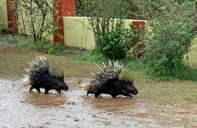 ಮಡಿಕೇರಿ ನಗರದಲ್ಲಿ ಮುಳ್ಳು ಹಂದಿಗಳು ದಿಢೀರ್ ಪ್ರತ್ಯಕ್ಷ: ಡೇಂಜರಸ್​ ಮುಳ್ಳುಗಳನ್ನು ಕಂಡು ಗಾಬರಿಗೊಂಡ ಜನ..!!