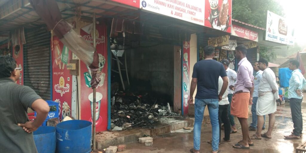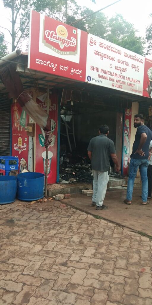 ಪುತ್ತೂರು: ಈಶ್ವರಮಂಗಲ ಹನುಮಗಿರಿ ಶ್ರೀ ಪಂಚಮುಖಿ ಕ್ಷೇತ್ರದ ಪಕ್ಕದಲ್ಲಿರುವ ಧನಂಜಯ ಗೌಡ ಎಂಬವರ ಮಾಲಕತ್ವದ ಪಂಚಮುಖಿ ಆಂಜನೇಯ ಹಣ್ಣು ಕಾಯಿ ಮತ್ತು ಫ್ಯಾನ್ಸಿ ಅಂಗಡಿ ಎಲೆಕ್ಟ್ರಾನಿಕ್ ಶಾರ್ಟ್ ನಿಂದ ಸುಟ್ಟು ಭಸ್ಮವಾಗಿದೆ.