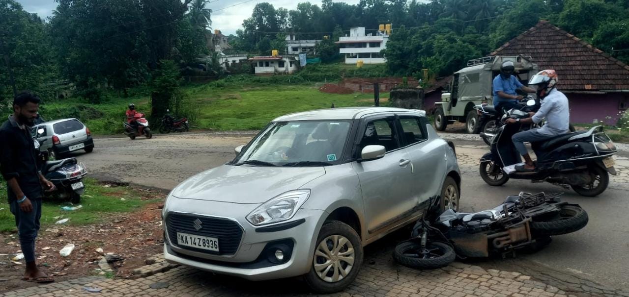 ನೆಕ್ಕಿಲಾಡಿ: ಕಾರು ಮತ್ತು ಬೈಕ್ ನಡುವೆ ಡಿಕ್ಕಿ: ಬೈಕ್ ಸವಾರನಿಗೆ ಗಾಯ..!!