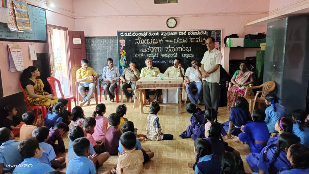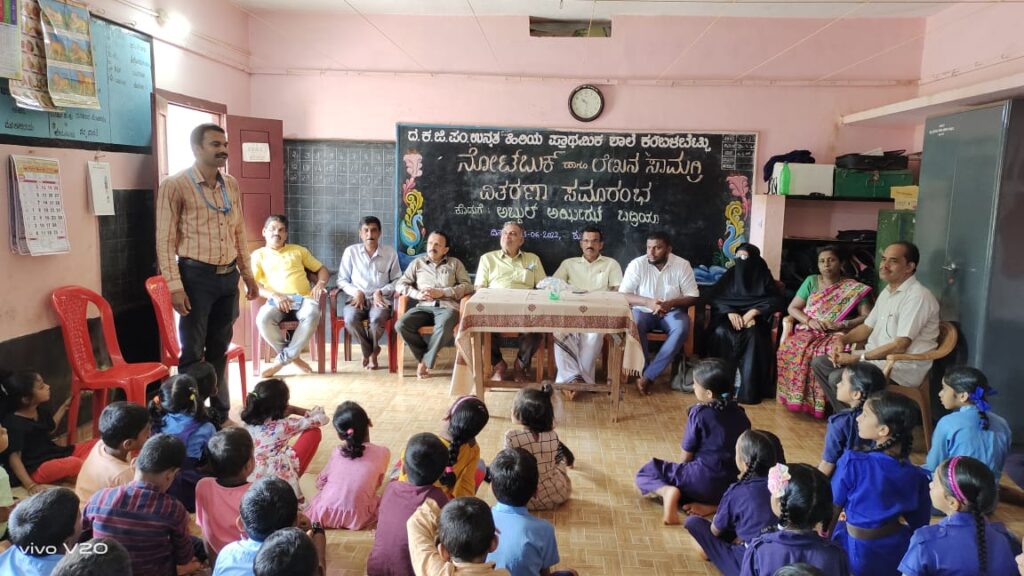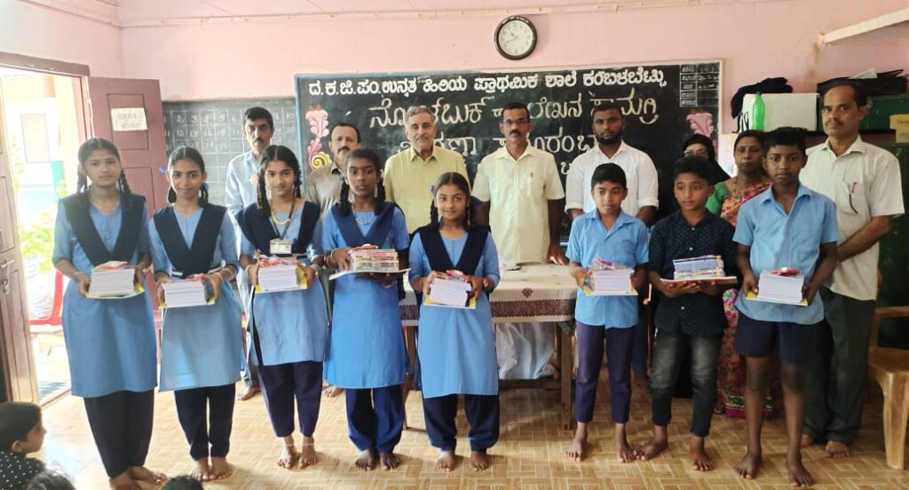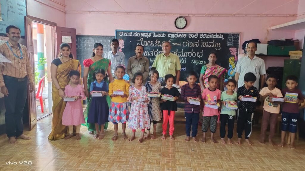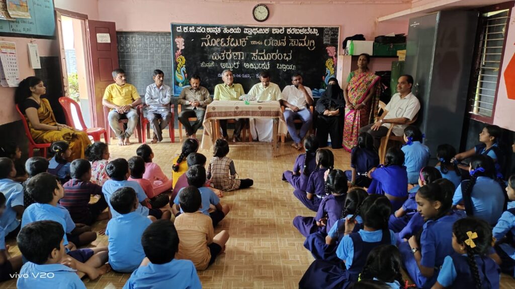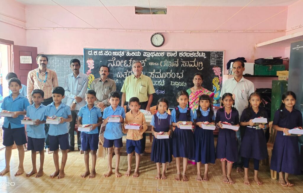 ವಿಟ್ಲ: ದ.ಕ.ಜಿ.ಪಂ.ಹಿ.ಪ್ರಾ.ಶಾಲೆ ಕಂಬಳಬೆಟ್ಟುವಿನಲ್ಲಿ ನೋಟ್ ಬುಕ್ ಮತ್ತು ಲೇಖನ ಸಾಮಗ್ರಿಗಳ ವಿತರಣಾ ಕಾರ್ಯಕ್ರಮ ಜೂ.3 ರಂದು ನಡೆಯಿತು.