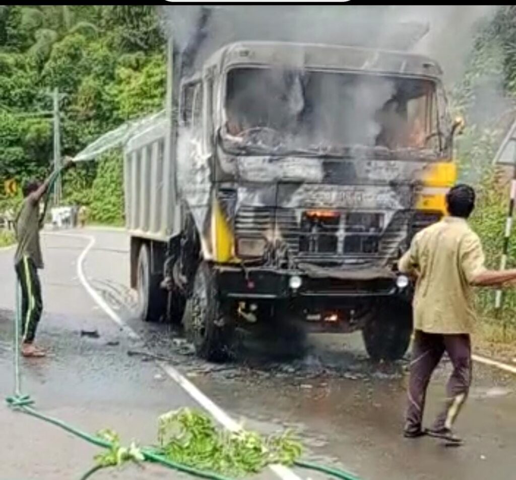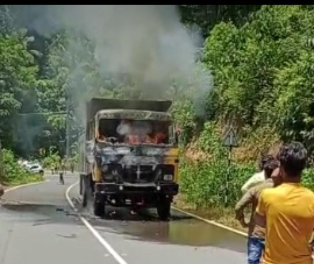 ವಿಟ್ಲ ಕಡೆಯಿಂದ ಬದಿಯಡ್ಕ ದತ್ತ ಜಲ್ಲಿ ಹೇರಿಕೊಂಡು ಬರುತ್ತಿದ್ದ ಲಾರಿಯಲ್ಲಿ ಹೊಗೆ ಕಾಣಿಸಿಕೊಂಡಿದ್ದು, ಇದನ್ನು ಗಮನಿಸಿದ ಚಾಲಕ ಲಾರಿ ಯನ್ನು ನಿಲ್ಲಿಸಿದ್ದು, ಕ್ಷಣಾರ್ಧದಲ್ಲಿ ಬೆಂಕಿ ಹೊತ್ತಿ ಕೊಂಡಿದೆ.