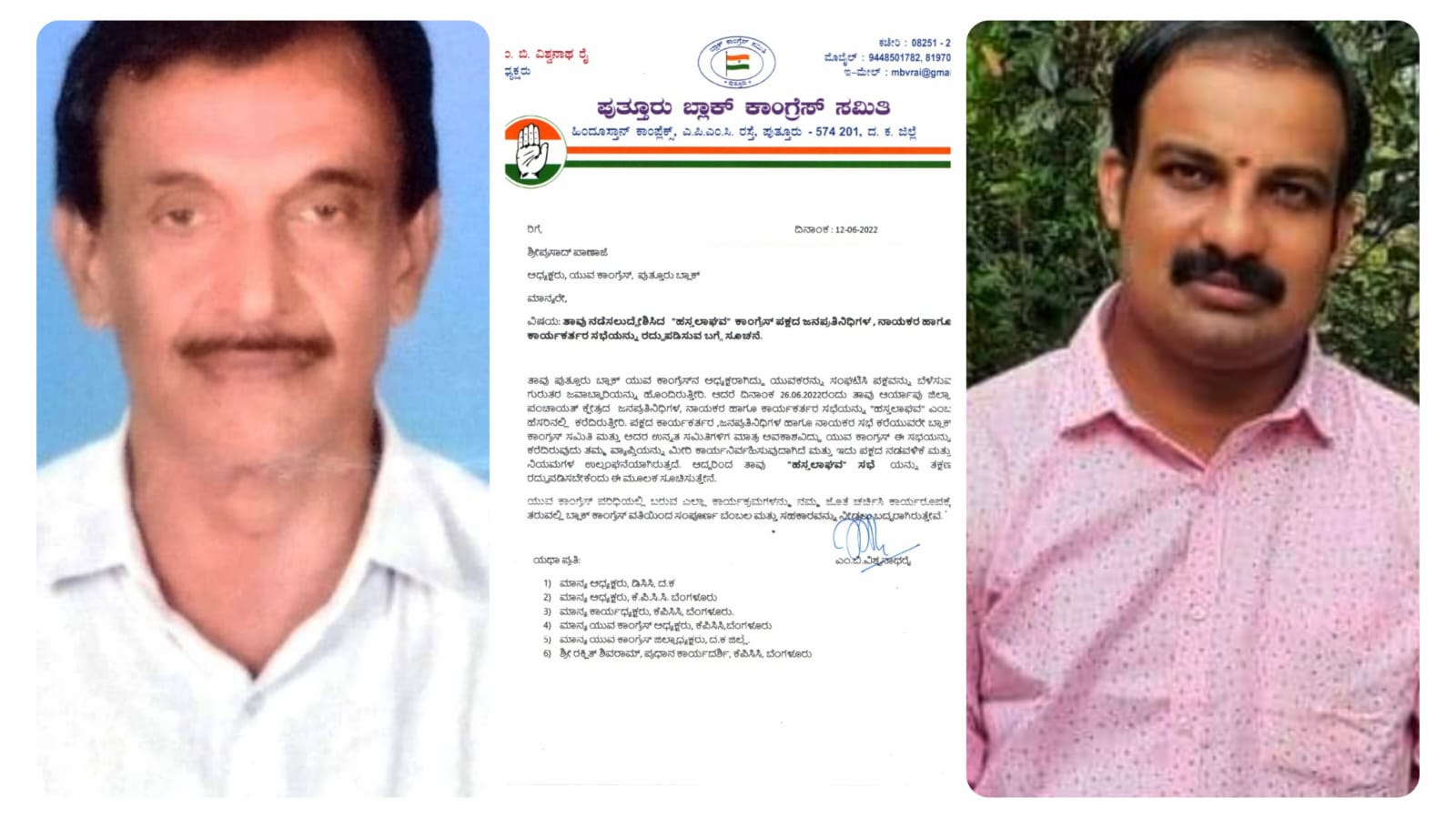 ಪುತ್ತೂರು ಬ್ಲಾಕ್ ಯುವ ಕಾಂಗ್ರೆಸ್ ಅಧ್ಯಕ್ಷರಾದ ಶ್ರೀಪ್ರಸಾದ್ ಪಾಣಾಜೆ ರವರು ಆಯೋಜಿಸಿದ್ದ ಕಾಂಗ್ರೆಸ್ ಪಕ್ಷದ ಜನಪ್ರತಿನಿಧಿಗಳ, ನಾಯಕರ ಹಾಗೂ ಕಾರ್ಯಕರ್ತರ ಸಭೆ ‘ಹಸ್ತಲಾಘವ’ ವನ್ನು ರದ್ದುಪಡಿಸುವಂತೆ ಪುತ್ತೂರು ಬ್ಲಾಕ್ ಕಾಂಗ್ರೆಸ್ ಅಧ್ಯಕ್ಷರಾದ ಎಂ.ಬಿ.ವಿಶ್ವನಾಥ ರೈ ರವರು ಸೂಚನೆ ನೀಡಿದ್ದಾರೆ.