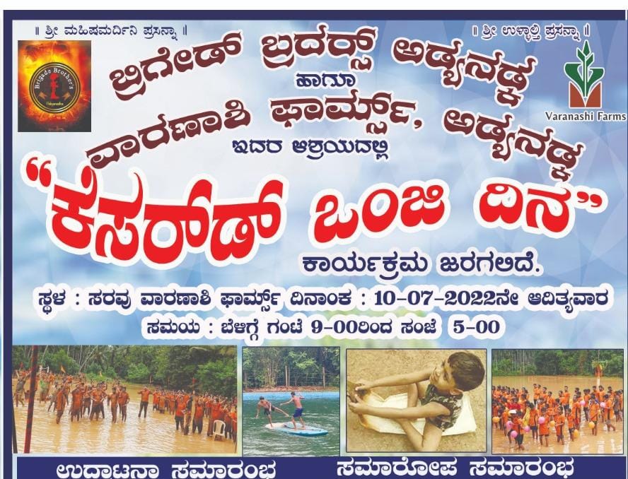 ವಿಟ್ಲ: ಬ್ರಿಗೇಡ್ ಬ್ರದರ್ಸ್ ಅಡ್ಯನಡ್ಕ ಹಾಗೂ ವಾರಣಾಶಿ ಫಾರ್ಮ್ಸ್, ಅಡ್ಯನಡ್ಕ ಇದರ ಆಶ್ರಯದಲ್ಲಿ ‘ಕೆಸರ್ಡ್ ಒಂಜಿ ದಿನ’ ಕಾರ್ಯಕ್ರಮ ಜು.10 ರಂದು ಸರವು ವಾರಣಾಶಿ ಫಾರ್ಮ್ಸ್ ನಲ್ಲಿ ನಡೆಯಲಿದೆ.
