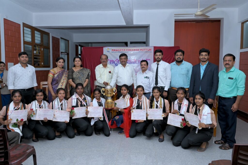 ಕಾರ್ಯಕ್ರಮದಲ್ಲಿ ರಾಜ್ಯ ಡಾಡ್ಜ್ಬಾಲ್ ಕ್ರೀಡಾಕೂಟದಲ್ಲಿ ವಿಜೇತರಾದ ಅಕ್ಷಯ ಕಾಲೇಜಿನ ತಂಡಕ್ಕೆ ಕಾರ್ಯಕ್ರಮದಲ್ಲಿ ಭಾಗವಹಿಸಿದ ಅತಿಥಿಗಳಿಂದ ಗೌರವಿಸಲಾಯಿತು. ರಾಷ್ಟಮಟ್ಟದಲ್ಲಿ ಕರ್ನಾಟಕ ರಾಜ್ಯವನ್ನು ಪ್ರತಿನಿಧಿಸಿ ಚಿನ್ನದ ಪದಕ ವಿಜೇತರಾದ ಕು. ದೇವಿಕಾರವನ್ನು ಈ ಸಂದರ್ಭದಲ್ಲಿ ಸನ್ಮಾನಿಸಲಾಯಿತು. ಕಾರ್ಯಕ್ರಮದ ಅಧ್ಯಕ್ಷತೆಯನ್ನು ವಹಿಸಿದ್ದ ಸಂಸ್ಥೆಯ ಅಧ್ಷಕ್ಷರಾದ ಜಯಂತ್ ನಡುಬೈಲು ರವರು ಕಾರ್ಯಕ್ರಮದಲ್ಲಿ ವಿದ್ಯಾರ್ಥಿಗಳಿಗೆ ಯಾವುದೇ ಮಾರ್ಗದರ್ಶನವಿಲ್ಲದೇ ರಾಜ್ಯಮಟ್ಟದಲ್ಲಿ ಪ್ರಶಸ್ತಿ ಪಡೆಯಲು ಸಹಕರಿಸಿದ ಎಲ್ಲಾ ದೈಹಿಕ ಶಿಕ್ಷಕರಿಗೆ ಧನ್ಯವಾದಗಳನ್ನು ತಿಳಿಸಿ ಮುಂದೆಯು ಹೀಗೇ ವಿದ್ಯಾರ್ಥಿಗಳಿಗೆ ಮಾರ್ಗದರ್ಶನ ನೀಡಬೇಕೆಂದು ಮನವಿಮಾಡಿಕೊಂಡರು.