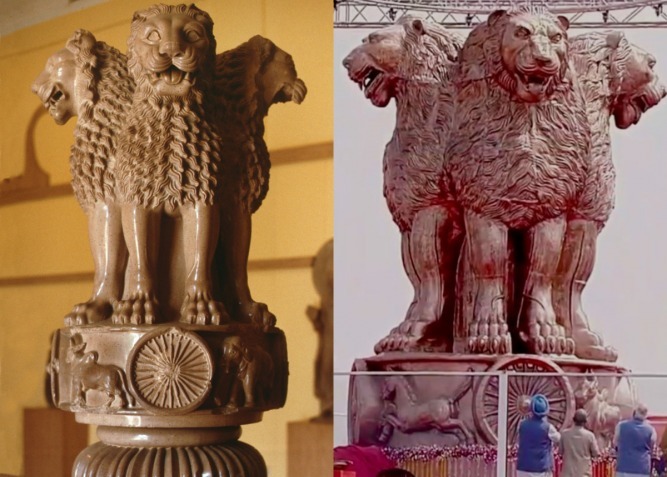 ಪ್ರಧಾನಿ ಮೋದಿಯವರು ಕೆಲ ವಾರಗಳ ಹಿಂದಷ್ಟೇ ನೂತನ ಸಂಸತ್ ಭವನದ ಮೇಲೆ ಈ ಲಾಂಛನವನ್ನು ಅನಾವರಣ ಮಾಡಿದ್ದರು. ಲಾಂಛನವನ್ನು ತಿರುಚಿರುವ ಬಗ್ಗೆ ವಿಪಕ್ಷಗಳ ಗಂಭೀರ ಆಪಾದನೆಯನ್ನು ಮಾಡಿವೆ. ಆದರೆ, ಕೇಂದ್ರ ಸರ್ಕಾರವು ವ್ಯಾಪಕ ಸಂಶೋಧನೆ ಮತ್ತು ಪ್ರಕ್ರಿಯಾ ವಿಧಾನಗಳ ನಂತರವೇ ಈ ಲಾಂಛನವನ್ನು ರೂಪಿಸಿರುವುದಾಗಿ ಹೇಳಿದೆ.