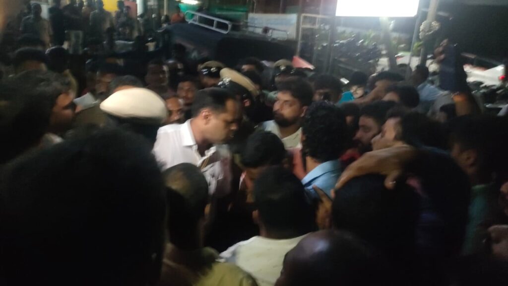 ಸ್ಥಳದಲ್ಲಿ ಸಾವಿರಾರು ಕಾರ್ಯಕರ್ತರು ಜಮಾವಣೆಗೊಂಡಿದ್ದು, ಪೊಲೀಸ್ ಅಧಿಕಾರಿಗಳ ಜೊತೆ ಮಾತುಕತೆ ನಡೆಸುತ್ತಿದ್ದಾರೆ.