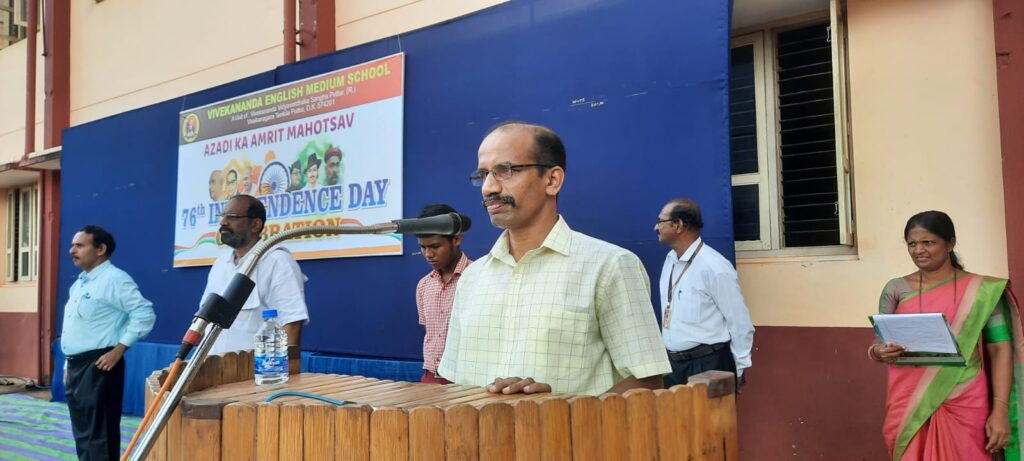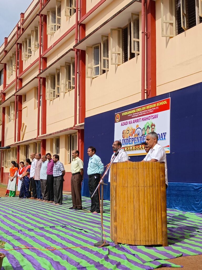 ಅವರು ಆ.15 ರಂದು ವಿವೇಕಾನಂದ ಆಂಗ್ಲ ಮಾಧ್ಯಮ ಶಾಲೆ ಮತ್ತು ವಿವೇಕಾನಂದ ಬಿ.ಎಡ್ ಕಾಲೇಜುಗಳ ಜಂಟಿ ಆಶ್ರಯದಲ್ಲಿ ವಿವೇಕಾನಂದ ಆಂಗ್ಲ ಮಾಧ್ಯಮ ಶಾಲಾ ಕ್ರೀಡಾಂಗಣದಲ್ಲಿ 76ನೇ ವರ್ಷದ ಸ್ವಾತಂತ್ರ್ಯಯ ದಿನಾಚರಣೆಯ ಸಂದರ್ಭದಲ್ಲಿ ಧ್ವಜಾರೋಹಣಗೈದು, ಮಾತನಾಡಿದರು.