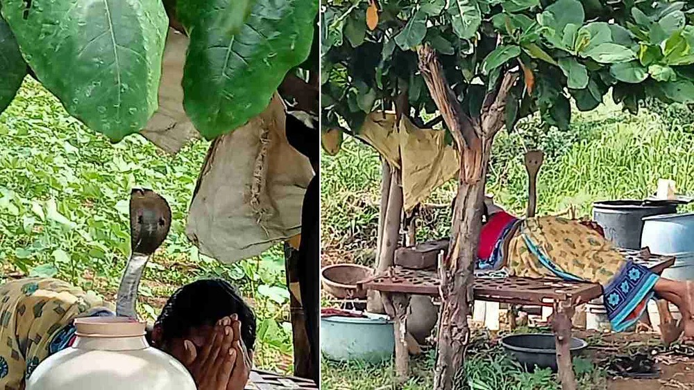 ಭಾಗಮ್ಮ ಬಡದಾಳ್ ಎಂಬುವರು ತಮ್ಮ ಜಮೀನಿನಲ್ಲಿ ಮಲಗಿದ್ದಾಗ ಮೈಮೇಲೆ ಬಂದ ನಾಗರಹಾವು ಹೆಡೆಎತ್ತಿ ನಿಂತುಕೊಂಡಿದೆ. ಈ ವೇಳೆ ಪ್ರಾಣ ಭೀತಿ ಅನುಭವಿಸಿದ ಮಹಿಳೆ ಕೈ ಮುಗಿದು ದೇವರಲ್ಲಿ ಬೇಡಿಕೊಂಡಿದ್ದಾರೆ.