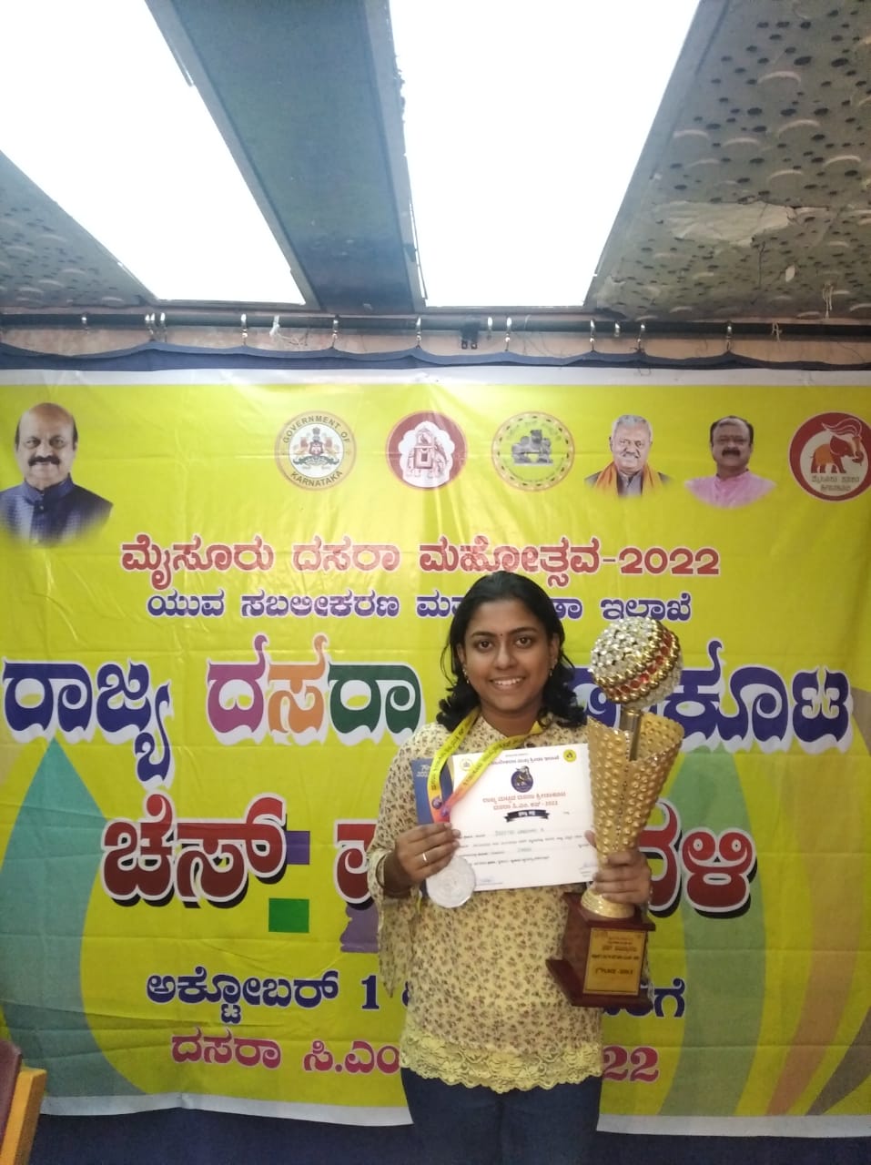 ಪುತ್ತೂರು: ಮೈಸೂರು ದಸರಾ ಮಹೋತ್ಸವದ ಪ್ರಯುಕ್ತ ಆಯೋಜಿಸಲಾದ ರಾಜ್ಯ ದಸರಾ ಕ್ರೀಡಾಕೂಟದ ಚೆಸ್ ಪಂದ್ಯಾಟದಲ್ಲಿ ವಿವೇಕಾನಂದ ಪದವಿಪೂರ್ವ ಕಾಲೇಜಿನ ದ್ವಿತೀಯ ಪಿಯುಸಿ ವಿಜ್ಞಾನ ವಿಭಾಗದ ದೀಪ್ತಿ ಲಕ್ಷ್ಮಿ ಕೆ ದ್ವಿತೀಯ ಸ್ಥಾನ ಗಳಿಸಿದ್ದಾರೆ.