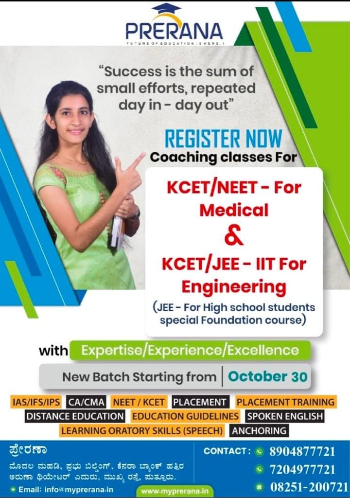 ಸಿಎ/ಸಿಎಂಎ, ನೀಟ್, ಕೆಸೆಟ್, ಐಎಎಸ್, ಐಎಫ್ಎಸ್, ಐಪಿಎಸ್ ಹಾಗೂ ಇನ್ನಿತರ ವೃತ್ತಿಪರ ಕೋರ್ಸ್ ಗಳಿಗೆ ತರಬೇತಿಗಳು ಸಂಸ್ಥೆಯಲ್ಲಿ ಲಭ್ಯವಿದ್ದು, ಹೆಚ್ಚಿನ ಮಾಹಿತಿಗಾಗಿ 8904877721, 7204977721, 08251-200721 ಅನ್ನು ಸಂಪರ್ಕಿಸಬಹುದಾಗಿದೆ..