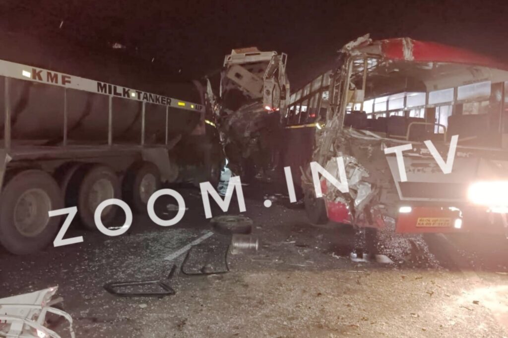 ಅರಸೀಕೆರೆ-ಶಿವಮೊಗ್ಗ ರಾಷ್ಟ್ರೀಯ ಹೆದ್ದಾರಿ 206ರ ಕಾಮಗಾರಿ ನಡೆಯುತ್ತಿದ್ದು, ಟಿಟಿ ವಾಹನದ ಹಿಂದೆ ಸಾರಿಗೆ ಬಸ್ ಬರುತ್ತಿತ್ತು. ಶಿವಮೊಗ್ಗ ಕಡೆಯಿಂದ ಅರಸೀಕೆರೆ ಕಡೆಗೆ ಬರುತ್ತಿದ್ದ ಹಾಲಿನ ಲಾರಿ ಚಾಲಕನಿಗೆ ತಿರುವು ಗೊತ್ತಾಗದೆ ಎರಡು ವಾಹನಗಳು ಬರುತ್ತಿದ್ದ ಕಡೆಗೆ ಏಕಮುಖವಾಗಿ ಸಂಚಾರ ನಡೆಸಿದ್ದಾನೆ. ಈ ವೇಳೆ ವೇಗವಾಗಿದ್ದ ಟಿಟಿ ವಾಹನ ಹಾಲಿನ ಲಾರಿಗೆ ಡಿಕ್ಕಿ ಹೊಡೆದು ಪಲ್ಟಿಯಾಗಿದ್ದು, ಇದೇ ವಾಹನದ ಹಿಂಬದಿಯಿದ್ದ ಸಾರಿಗೆ ಬಸ್ ಪಲ್ಟಿಯಾಗಿದ್ದ ಟಿಟಿ ವಾಹನಕ್ಕೆ ಡಿಕ್ಕಿ ಹೊಡೆದಿದೆ.
