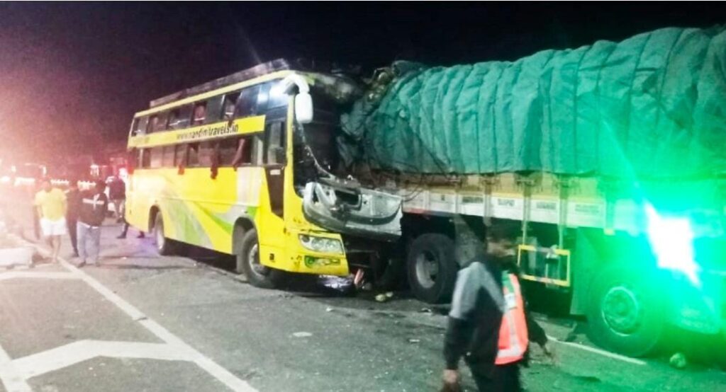 ಅಕ್ಷಯ್ ಮೃತ ಪ್ರಯಾಣಿಕ. ಮಧ್ಯರಾತ್ರಿ ಅಪಘಾತ ಸಂಭವಿಸಿದ್ದು, ದಕ್ಷಿಣ ಕನ್ನಡ ಮೂಲದವರು ಬಸ್ಸಿನಲ್ಲಿದ್ದರು ಎನ್ನಲಾಗಿದೆ.