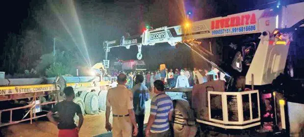 ಘಟನೆ ಸಂಭವಿಸಿದಾಕ್ಷಣ ಪೊಲೀಸರು ಸ್ಥಳಕ್ಕೆ ಧಾವಿಸಿ ಕ್ರೇನ್ ಮೂಲಕ ಲಾರಿಯನ್ನು ಹೆದ್ದಾರಿಯಿಂದ ಬದಿಗೆ ಸರಿಸುವ ಕಾರ್ಯಾಚರಣೆ ಕೈಗೊಂಡರು.