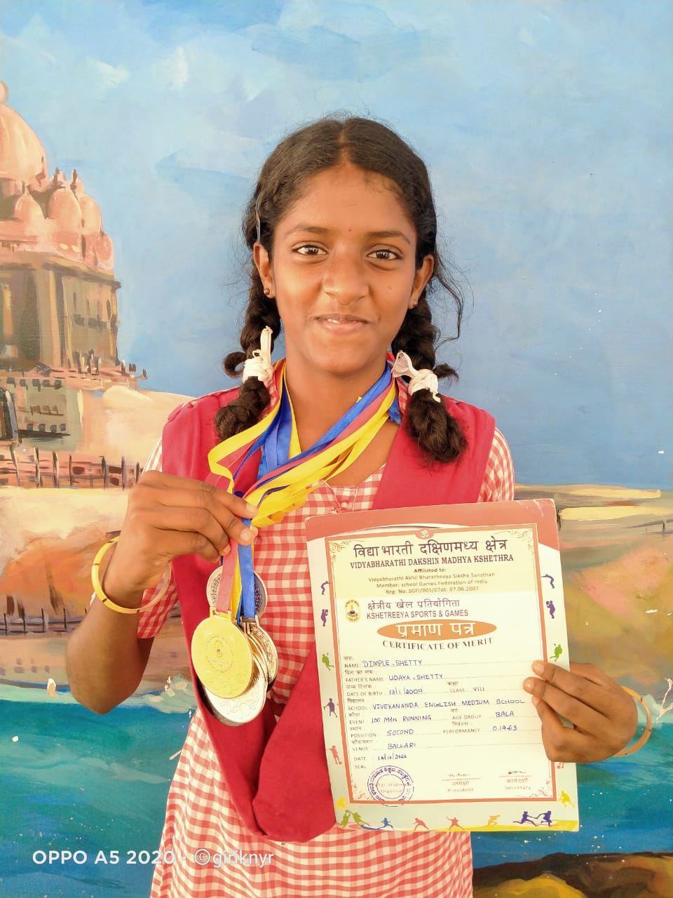 ವಿದ್ಯಾಭಾರತಿ ಕರ್ನಾಟಕ, ಹಾಗೂ ಬಾಲ ಭಾರತಿ ವಿದ್ಯಾಲಯ, ಬಳ್ಳಾರಿ ಇವರ ಜಂಟಿ ಆಶ್ರಯದಲ್ಲಿ ಬಾಲ ಭಾರತಿ ವಿದ್ಯಾಲಯ, ಬಳ್ಳಾರಿ ಕ್ರೀಡಾಂಗಣದಲ್ಲಿ ಅಕ್ಟೋಬರ್ 13, 14ರಂದು ಕರ್ನಾಟಕ ಆಂಧ್ರ ಪ್ರದೇಶ್ ತೆಲಂಗಣ ರಾಜ್ಯ ವನ್ನು ಒಳಗೊಂಡ ಕ್ಷೇತ್ರೀಯ ಮಟ್ಟದ ಕ್ರೀಡಾಕೂಟದಲ್ಲಿ ವಿವೇಕಾನಂದ ಆಂಗ್ಲ ಮಾಧ್ಯಮ ಶಾಲಾ 8ನೇ ತರಗತಿ ವಿದ್ಯಾರ್ಥಿನಿ ಡಿಂಪಲ್ ಶೆಟ್ಟಿ(ಮೆರ್ಲ ನಿವಾಸಿ ಉದಯ ಶೆಟ್ಟಿ ಮತ್ತು ಸುನೀತಾ ಶೆಟ್ಟಿ ದಂಪತಿ ಪುತ್ರಿ) – 100 ಮೀಟರ್ -ದ್ವಿತೀಯ, 4*100 ಮೀಟರ್ ರಿಲೇ –ಪ್ರಥಮ ಸ್ಥಾನ ಪಡೆದುಕೊಂಡಿದ್ದು, ನವೆಂಬರ್ 19ರಿಂದ 23ರವರೆಗೆ ಹರಿಯಾಣದ ಕುರುಕ್ಷೇತ್ರದಲ್ಲಿ ನಡೆಯಲಿರುವ ರಾಷ್ಟ್ರಮಟ್ಟದ ಕ್ರೀಡಾಕೂಟದಲ್ಲಿ ಭಾಗವಹಿಸಲು ಆಯ್ಕೆಯಾಗಿರುತ್ತಾಳೆ ಎಂದು ತೆಂಕಿಲ ವಿವೇಕಾನಂದ ಆಂಗ್ಲ ಮಾಧ್ಯಮ ಶಾಲಾ ಮುಖ್ಯೋಪಾಧ್ಯಾಯರು ಪ್ರಕಟಣೆಯಲ್ಲಿ ತಿಳಿಸಿದ್ದಾರೆ.
