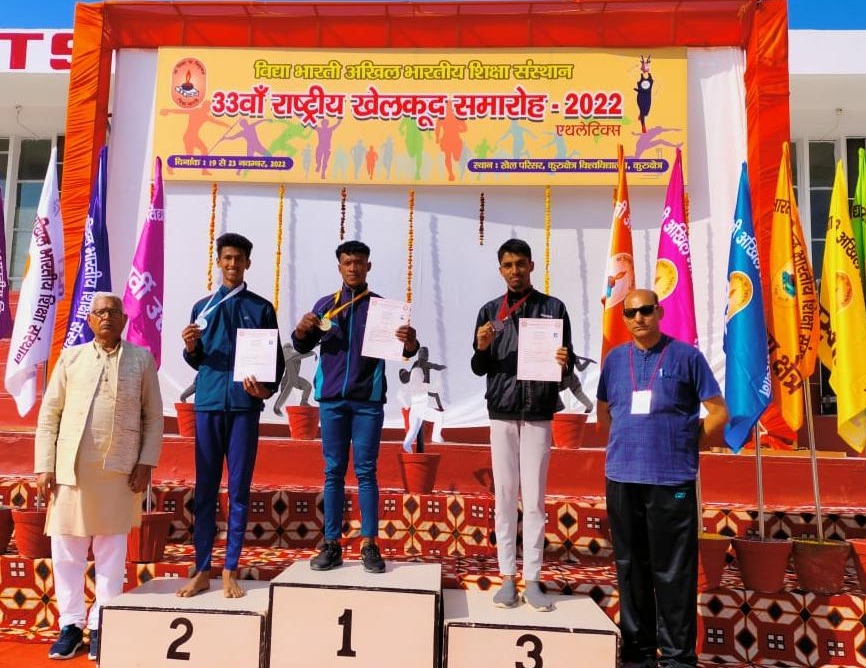 ಪುತ್ತೂರು: ಹರಿಯಾಣದ ಕುರುಕ್ಷೇತ್ರದಲ್ಲಿ ನವೆಂಬರ್ 19 ರಿಂದ 23ರ ವರೆಗೆ ನಡೆಯುತ್ತಿರುವ ವಿದ್ಯಾಭಾರತಿ ರಾಷ್ಟ್ರಮಟ್ಟದ ಅಥ್ಲೆಟಿಕ್ಸ್ ಕ್ರೀಡಾಕೂಟದ ಟ್ರಿಪಲ್ಜಂಪ್ ಸ್ಪರ್ಧೆಯಲ್ಲಿ ವಿವೇಕಾನಂದ ಪದವಿಪೂರ್ವ ಕಾಲೇಜಿನ ಪ್ರಥಮ ಪಿಯುಸಿ ವಾಣಿಜ್ಯ ವಿಭಾಗದ ನಿಹಾಲ್ ರಾಜ್ ಬೆಳ್ಳಿಯ ಪದಕದೊಂದಿಗೆ ದ್ವಿತೀಯ ಸ್ಥಾನವನ್ನು ಪಡೆದುಕೊಂಡಿದ್ದಾರೆ.
