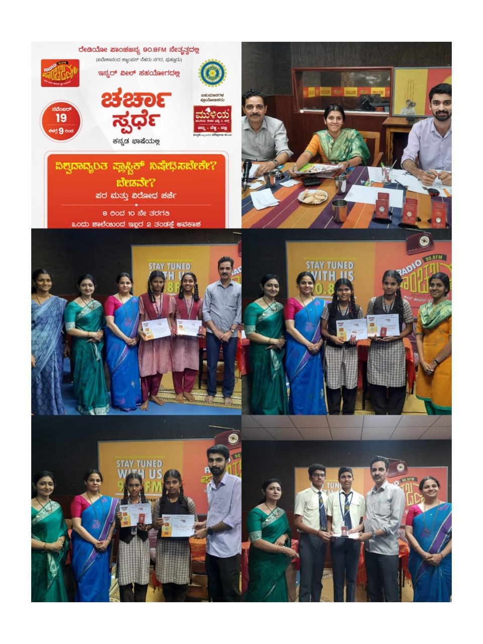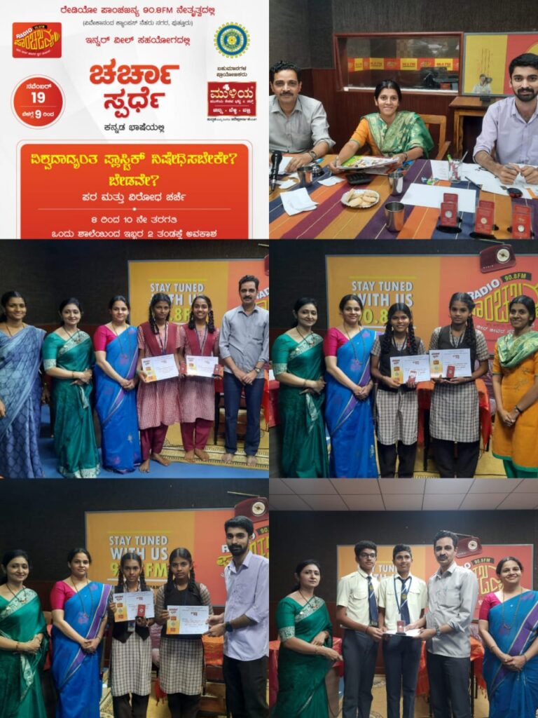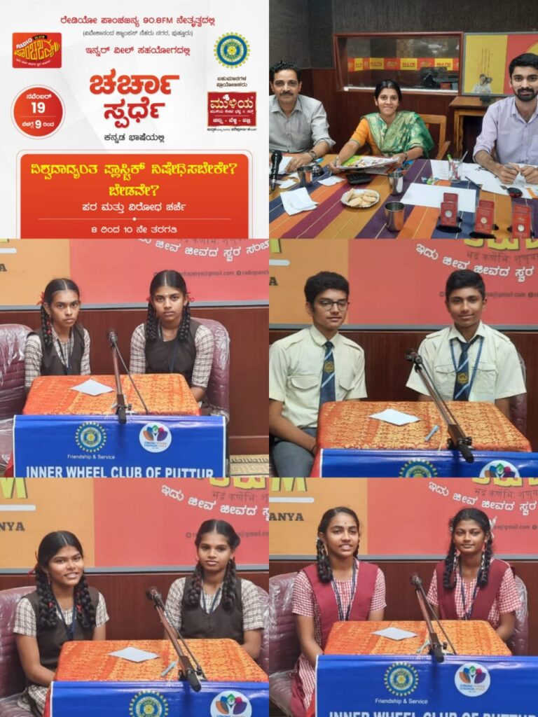 ಪುತ್ತೂರು: ರೇಡಿಯೋ ಪಾಂಚಜನ್ಯ 90.8 ಎಫ್.ಎಂ. ನೇತೃತ್ವದಲ್ಲಿ ಇನ್ನರ್ ವೀಲ್ ಸಹಯೋಗದಲ್ಲಿ ವಿಶ್ವದಾದ್ಯಂತ ಪ್ಲಾಸ್ಟಿಕ್ ನಿಷೇಧಿಸಬೇಕೇ ? ಬೇಡವೇ ? ಪರ ಮತ್ತು ವಿರೋಧ 8 ರಿಂದ 10ನೇ ತರಗತಿ ಶಾಲಾ ವಿದ್ಯಾರ್ಥಿಗಳಿಗೆ ಚರ್ಚಾ ಸ್ಪರ್ಧೆ ನ. 19ರಂದು ರೇಡಿಯೋ ಪಾಂಚಜನ್ಯದಲ್ಲಿ ಸ್ಟುಡಿಯೋದಲ್ಲಿ ನಡೆಯಿತು.