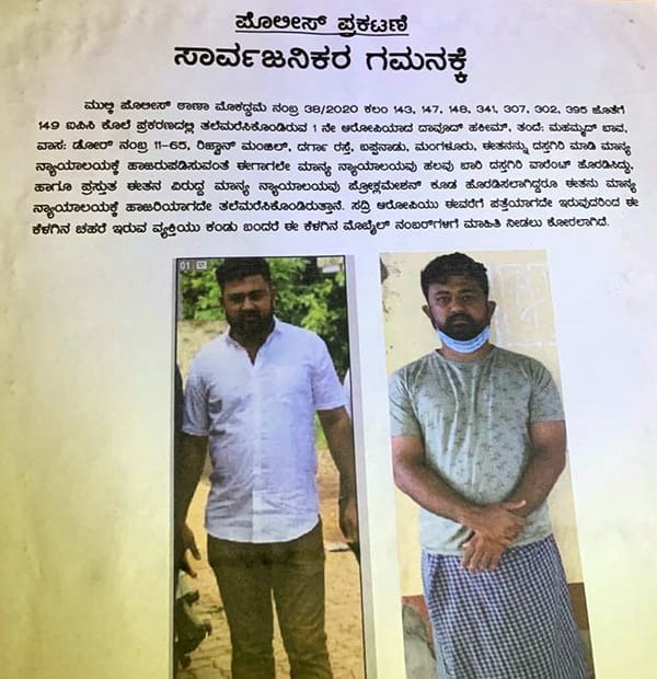 ಮುಲ್ಕಿ ಪೊಲೀಸ್ ಠಾಣೆ ಮೊಕದ್ದಮೆ ಸಂ. 38/2020 ಕಲಂ 143, 147, 148, 341, 307, 302, 395 ಜೊತೆಗೆ 149 ಐಪಿಸಿ ಕೊಲೆ ಪ್ರಕರಣದಲ್ಲಿ ತಲೆ ಮರೆಸಿಕೊಂಡಿರುವ 1ನೆ ಆರೋಪಿಯಾದ ದಾವೂದ್ ಹಕೀಮ್, ಬಪ್ಪನಾಡು ಮಂಗಳೂರು ಈತನನ್ನು ದಸ್ತಗಿರಿ ಮಾಡಿ ನ್ಯಾಯಾಲಯಕ್ಕೆ ಹಾಜರುಪಡಿಸುವಂತೆ ಈಗಾಗಲೇ ನ್ಯಾಯಾಲಯವು ಹಲವು ಬಾರಿ ದಸ್ತಗಿರಿ ವಾರೆಂಟ್ ಹೊರಡಿಸಿದ್ದು ಹಾಗೂ ಪ್ರಸ್ತುತ ಈತನ ವಿರುದ್ಧ ನ್ಯಾಯಾಲಯವು ಪ್ರೋಕ್ಲಮೇಶನ್ ಕೂಡ ಹೊರಡಿಸಲಾಗಿದ್ದರೂ ಈತನು ನ್ಯಾಯಾಲಯಕ್ಕೆ ಹಾಜರಾಗದೇ ತಲೆಮರೆಸಿಕೊಂಡಿರುತ್ತಾನೆ.