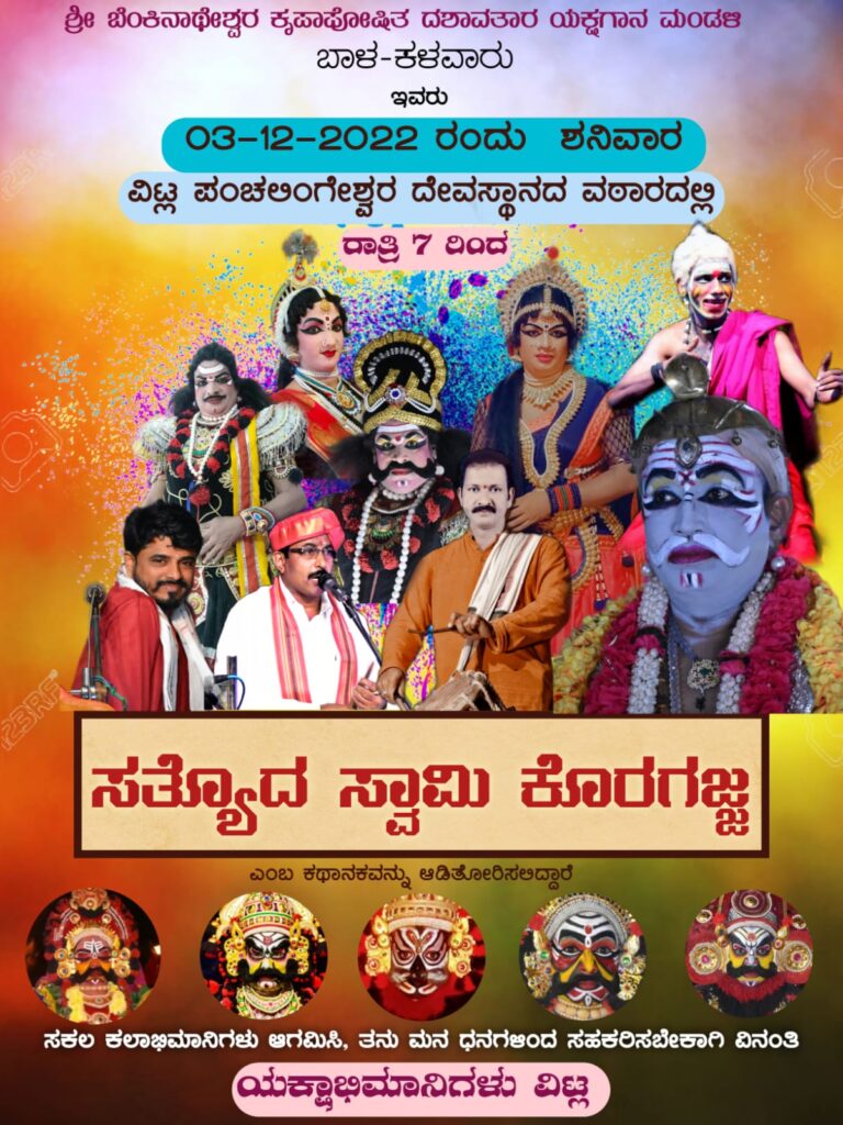 ಡಿ.3 (ನಾಳೆ) ರಾತ್ರಿ 7 ಗಂಟೆಗೆ ಯಕ್ಷಗಾನ ಪ್ರಸಂಗ ಆರಂಭವಾಗಲಿದೆ. ಯಕ್ಷಭಿಮಾನಿಗಳು ಆಗಮಿಸುವಂತೆ ಆಯೋಜಕರು ಪ್ರಕಟಣೆಯಲ್ಲಿ ತಿಳಿಸಿದ್ದಾರೆ..