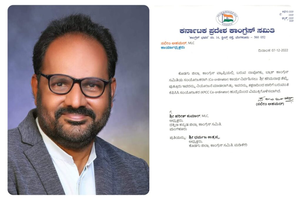 ಕೆಪಿಸಿಸಿ ಸಂಯೋಜಕ ಹುದ್ದೆಯಿಂದ ಕಾವು ಹೇಮನಾಥ್ ಶೆಟ್ಟಿ ರವರನ್ನು ನಿಯುಕ್ತಿಗೊಳಿಸಲಾಗಿದೆ ಎಂದು ದಕ್ಷಿಣ ಕನ್ನಡ ಜಿಲ್ಲಾ ಕಾಂಗ್ರೆಸ್ ಸಮಿತಿ ಅಧ್ಯಕ್ಷ ಕೆ. ಹರೀಶ್ ಕುಮಾರ್ ರವರು ಖಚಿತ ಪಡಿಸಿದ್ದಾರೆ..