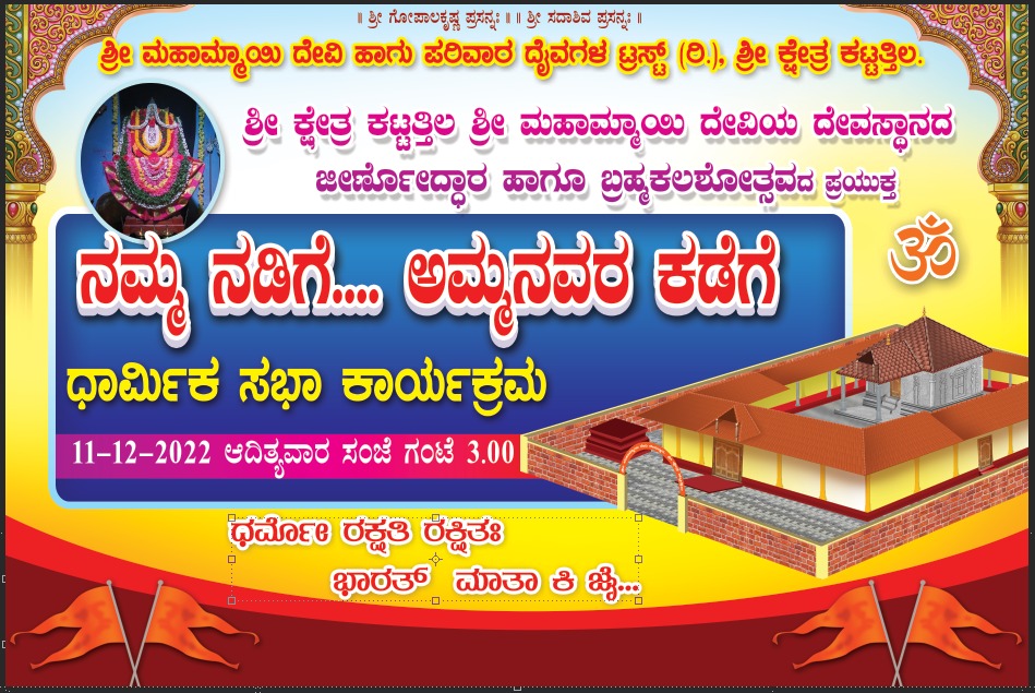 ಬಂಟ್ವಾಳ: ಶ್ರೀ ಮಹಾಮ್ಮಾಯಿ ದೇವಿ ಹಾಗೂ ಪರಿವಾರ ದೈವಗಳ ಟ್ರಸ್ಟ್ ರಿ. ವತಿಯಿಂದ ಶ್ರೀ ಕ್ಷೇತ್ರ ಕಟ್ಟತ್ತಿಲ ಶ್ರೀ ಮಹಾಮ್ಮಾಯಿ ದೇವಿಯ ದೇವಸ್ಥಾನದ ಜೀರ್ಣೋದ್ದಾರ ಹಾಗೂ ಬ್ರಹ್ಮಕಲಶೋತ್ಸವದ ಪ್ರಯುಕ್ತ ‘ನಮ್ಮ ನಡಿಗೆ.. ಅಮ್ಮನವರ ಕಡೆಗೆ’ ಕಾರ್ಯಕ್ರಮ ಡಿ.11 ರಂದು ನಡೆಯಲಿದೆ.