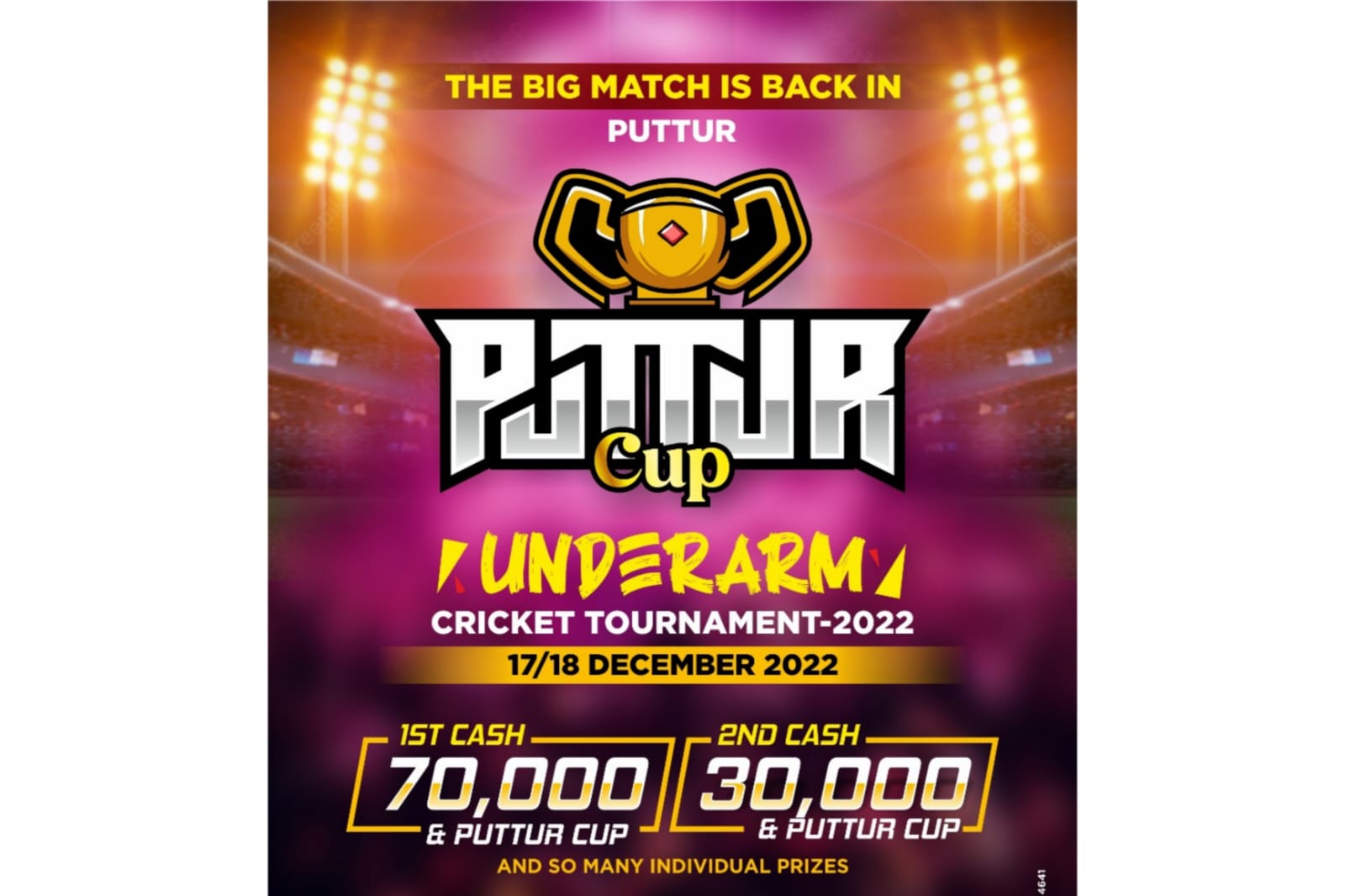 ಪುತ್ತೂರು: ‘ಸಿಟಿ ಗೈಯ್ಸ್’ ಪ್ರಸ್ತುತ ಪಡಿಸುವ ಕ್ರಿಕೆಟ್ ಪ್ರೇಮಿಗಳ ಮತ್ತು ಆಟಗಾರರ ಹಬ್ಬ ‘ಅಂಡರ್ ಆರ್ಮ್ ಕ್ರಿಕೆಟ್ ಟೂರ್ನಮೆಂಟ್’ “ಪುತ್ತೂರು ಕಪ್-2022” ಡಿ.17 ಮತ್ತು 18 ರಂದು ನಡೆಯಲಿದೆ.