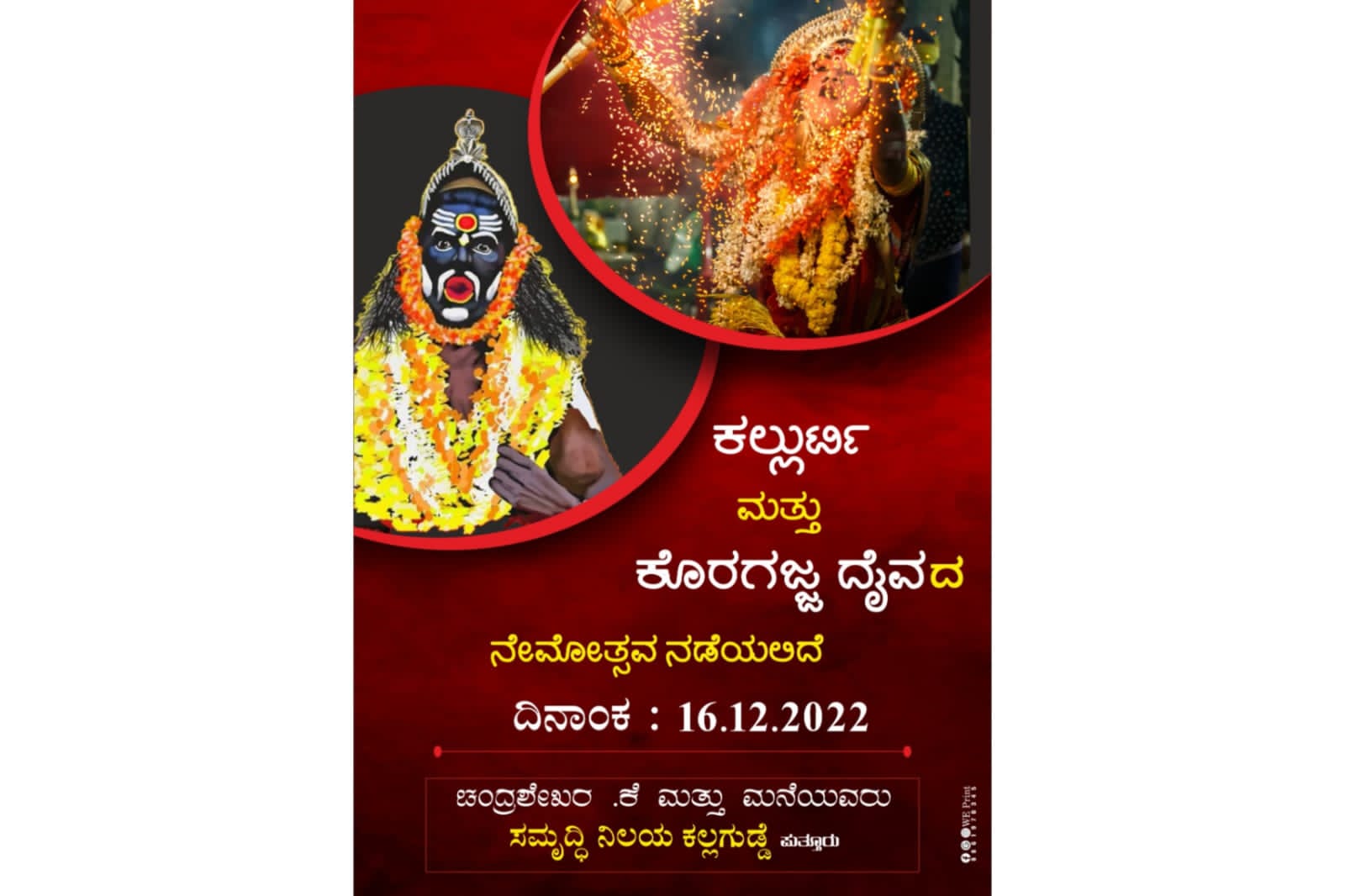 ದೈವಗಳ ನೇಮೋತ್ಸವಕ್ಕೆ ಆಗಮಿಸಿ ಪ್ರಸಾದ ಸ್ವೀಕರಿಸುವಂತೆ ಚಂದ್ರಶೇಖರ ಕೆ. ಮತ್ತು ಮನೆಯವರು ಪ್ರಕಟಣೆಯಲ್ಲಿ ತಿಳಿಸಿದ್ದಾರೆ..