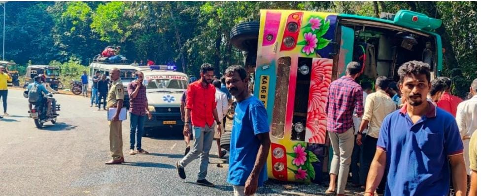 ಕಾರ್ಕಳ: ಶಾಲಾ ಮಕ್ಕಳ ಶೈಕ್ಷಣಿಕ ಪ್ರವಾಸದ ಬಸ್ ಮಗುಚಿ ಬಿದ್ದ ಘಟನೆ ಧರ್ಮಸ್ಥಳ- ಕಾರ್ಕಳ ರಾಜ್ಯ ಹೆದ್ದಾರಿಯ ನಲ್ಲೂರು ಸಮೀಪ ಪಾಜೆಗುಡ್ಡೆ ತಿರುವಿನಲ್ಲಿ ನಡೆದಿದೆ.