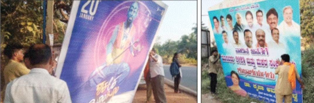 ಅನಧಿಕೃತವಾಗಿ ಅಳವಡಿಸಿದ ಬ್ಯಾನರ್ ಮತ್ತು ಕಟೌಟ್ ಗಳನ್ನು ಸಾರ್ವಜನಿಕರಿಗೆ ತೊಂದರೆ ಆಗದ ರೀತಿಯ ಅಳವಡಿಸಲು ಅನುಮತಿ ಪಡೆಯಲು ಸಕಾಲ ಸೇವೆಯಲ್ಲಿ ಅರ್ಜಿ ಸಲ್ಲಿಸಿ ಶುಲ್ಕ ಪಾವತಿ ಮಾಡಬೇಕು. ಇಲ್ಲವಾದಲ್ಲಿ ಜ.11 ರಂದು ತೆರವು ಕಾರ್ಯಚರಣೆ ಮಾಡಲಾಗುವುದು ಎಂದು ನಗರಸಭೆಯಿಂದ ತಿಳಿಸಲಾಗಿತ್ತು.