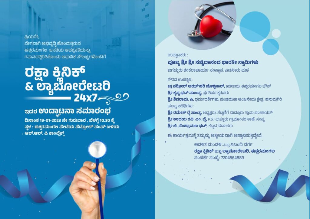 (ಜ.19) ಈಶ್ವರಮಂಗಲ: ‘ರಕ್ಷಾ ಕ್ಲಿನಿಕ್ & ಲ್ಯಾಬೋರೇಟರಿ 24*7’ ಶುಭಾರಂಭ